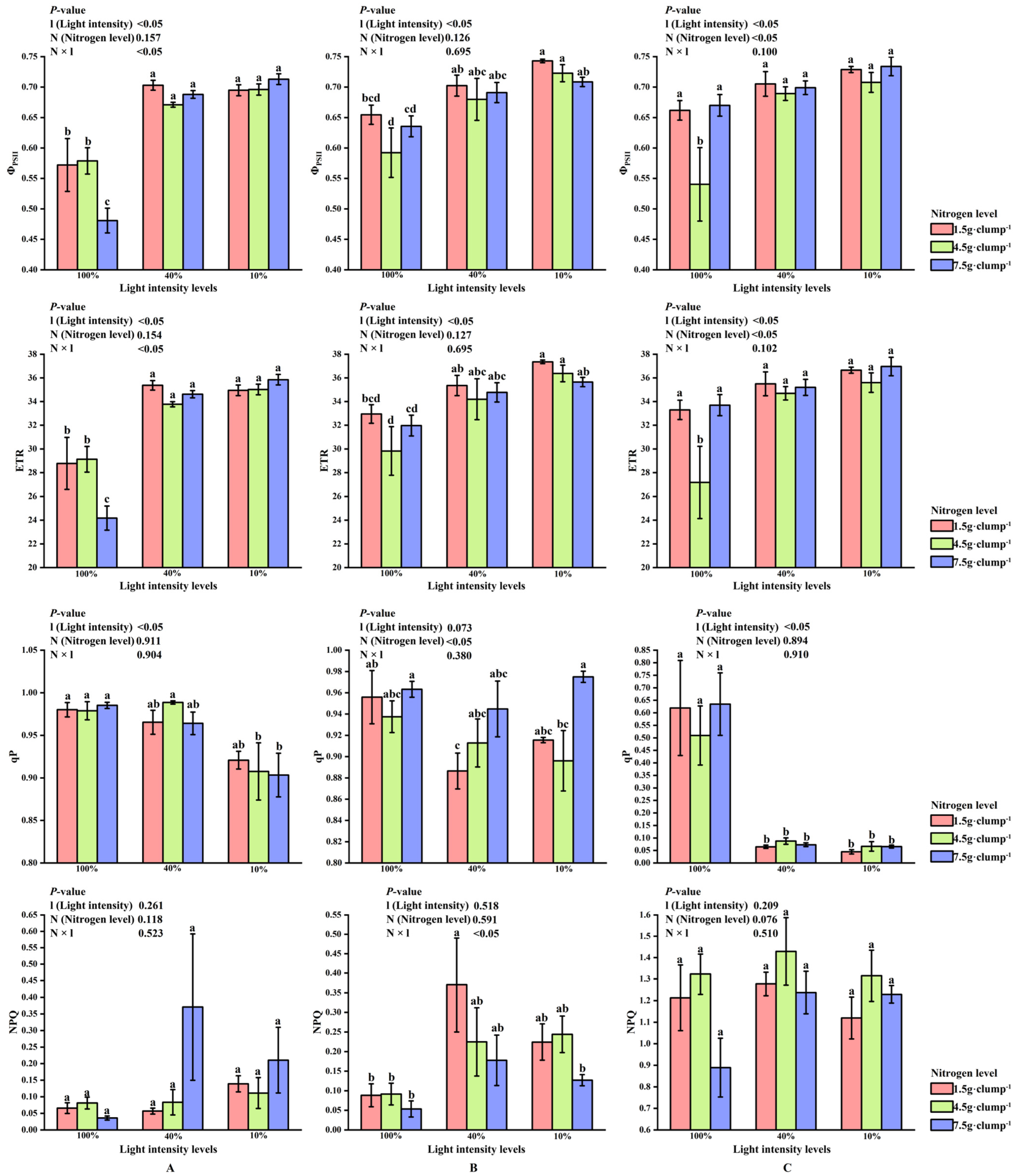 APA StyleRong, J., Liu, J., Lei, H., Lin, Y., Wang, J., Guo, Q., Seerat, A., He, T., Chen, L., Zheng, Y., & Fan, L. (2026). Interactive Effects of Light Intensity and Nitrogen Supply on Shoot Emergence and Associated Photosynthetic Traits in Dendrocalamus latiflorus. Biology, 15(1), 49. https://doi.org/10.3390/biology15010049
