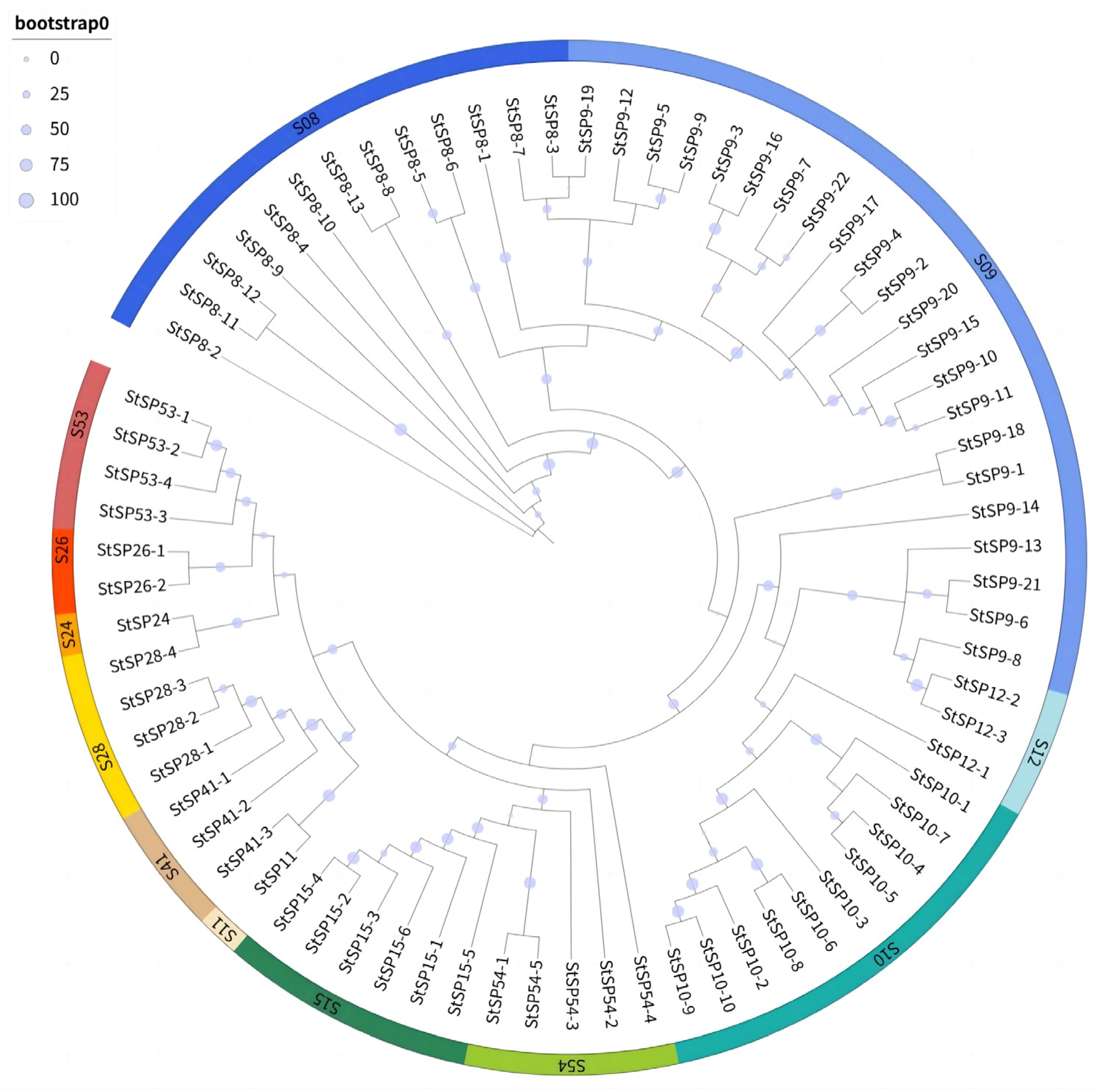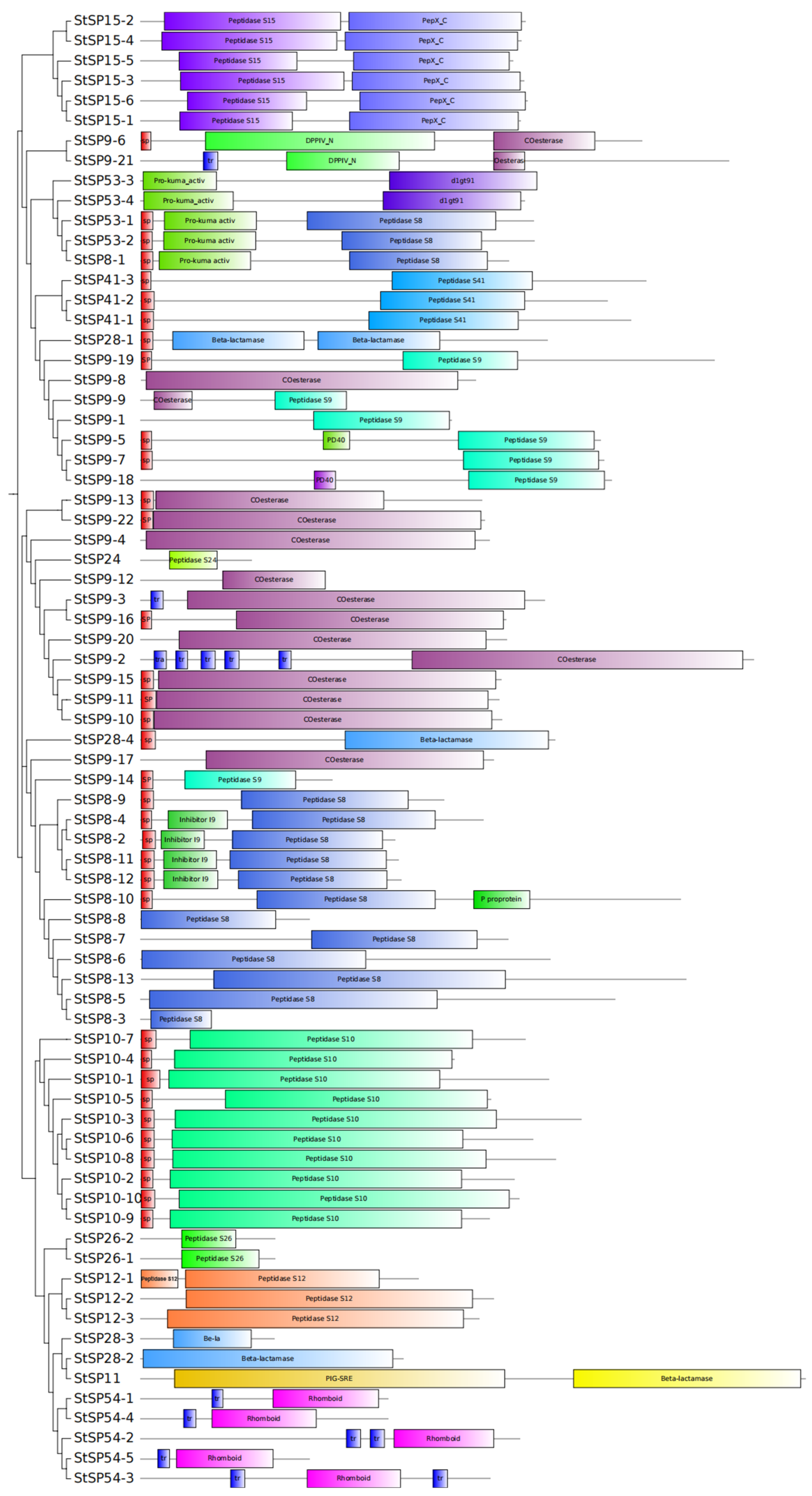 2.3. Phylogenetic Analysis of StSPs