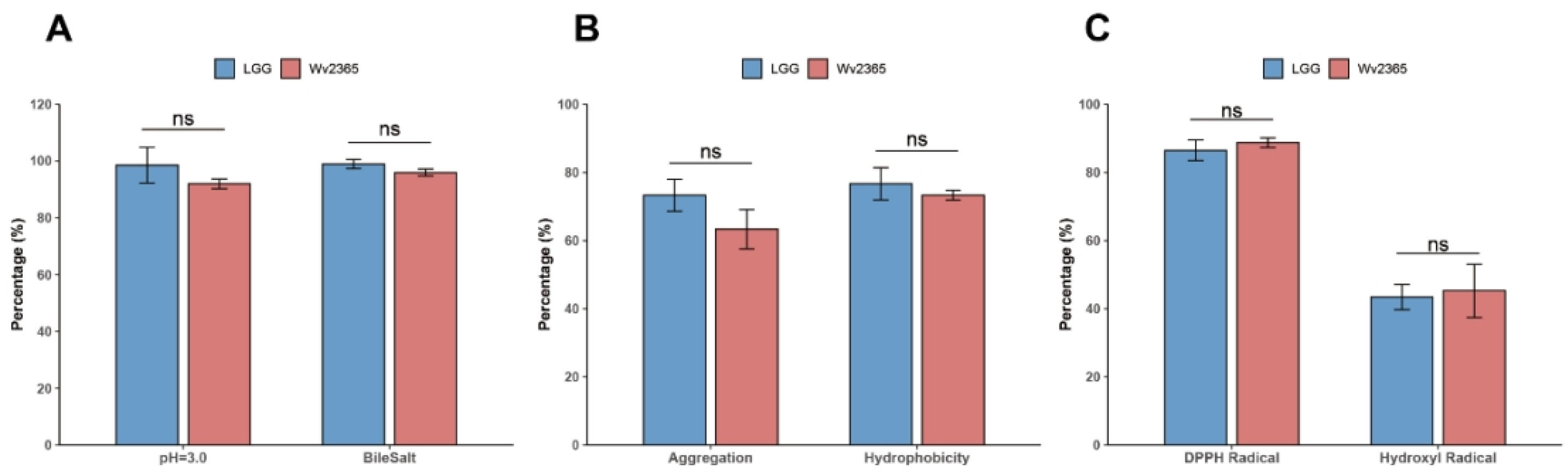 4.5. In Vitro Phenotypic Evidence Supports the Probiotic Potential of Wv2365