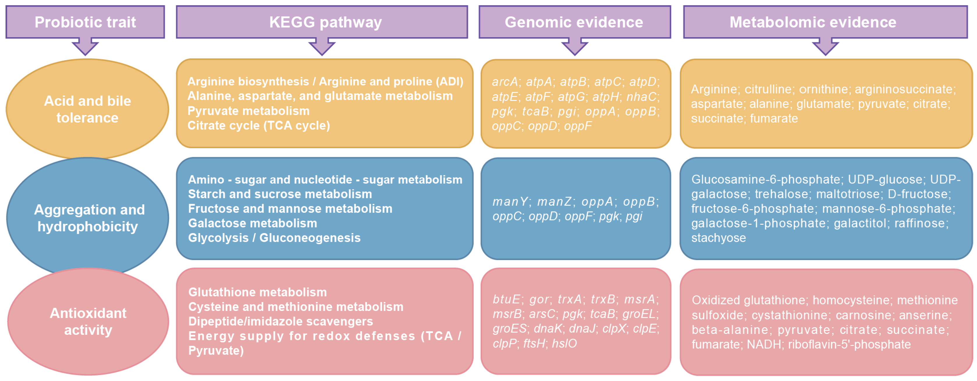 4.4. Integrated Genomic and Metabolomic Evidence Underpin Probiotic-Relevant Phenotypes