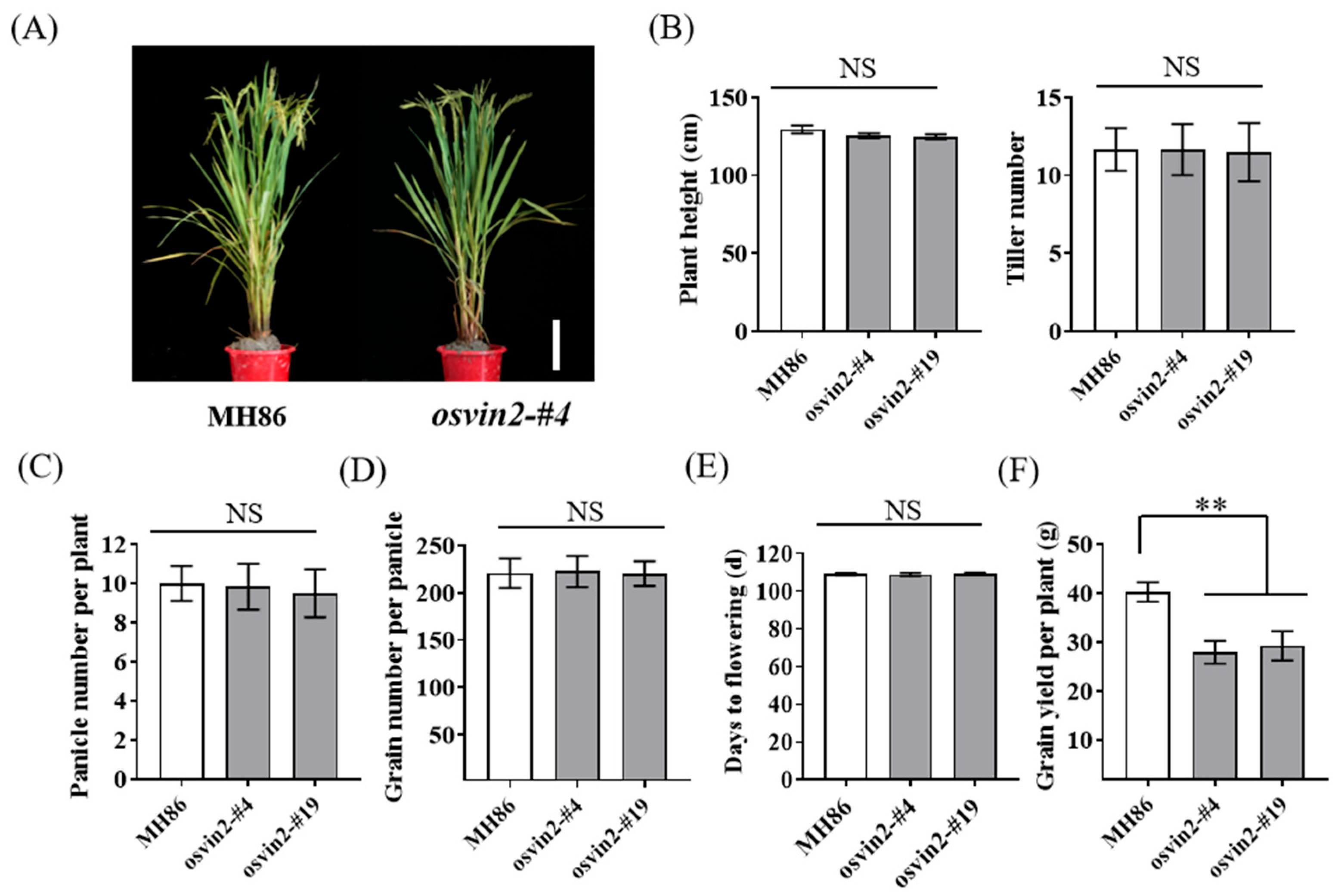 3.2. CRISPR/Cas9-Mediated Mutagenesis of OsVIN2