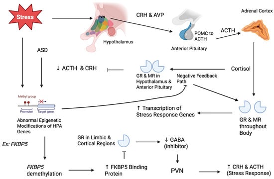 - Makris, G.; Agorastos, A.; Chrousos, G.P.; Pervanidou, P. Stress System Activation in Children and Adolescents with Autism Spectrum Disorder. Front. Neurosci. 2021, 15, 756628. [Google Scholar] [CrossRef]