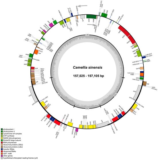 - Huang, H.; Shi, C.; Liu, Y.; Mao, S.-Y.; Gao, L.-Z. Thirteen Camellia chloroplast genome sequences determined by high-throughput sequencing: Genome structure and phylogenetic relationships. BMC Evol. Biol. 2014, 14, 151. [Google Scholar] [CrossRef]