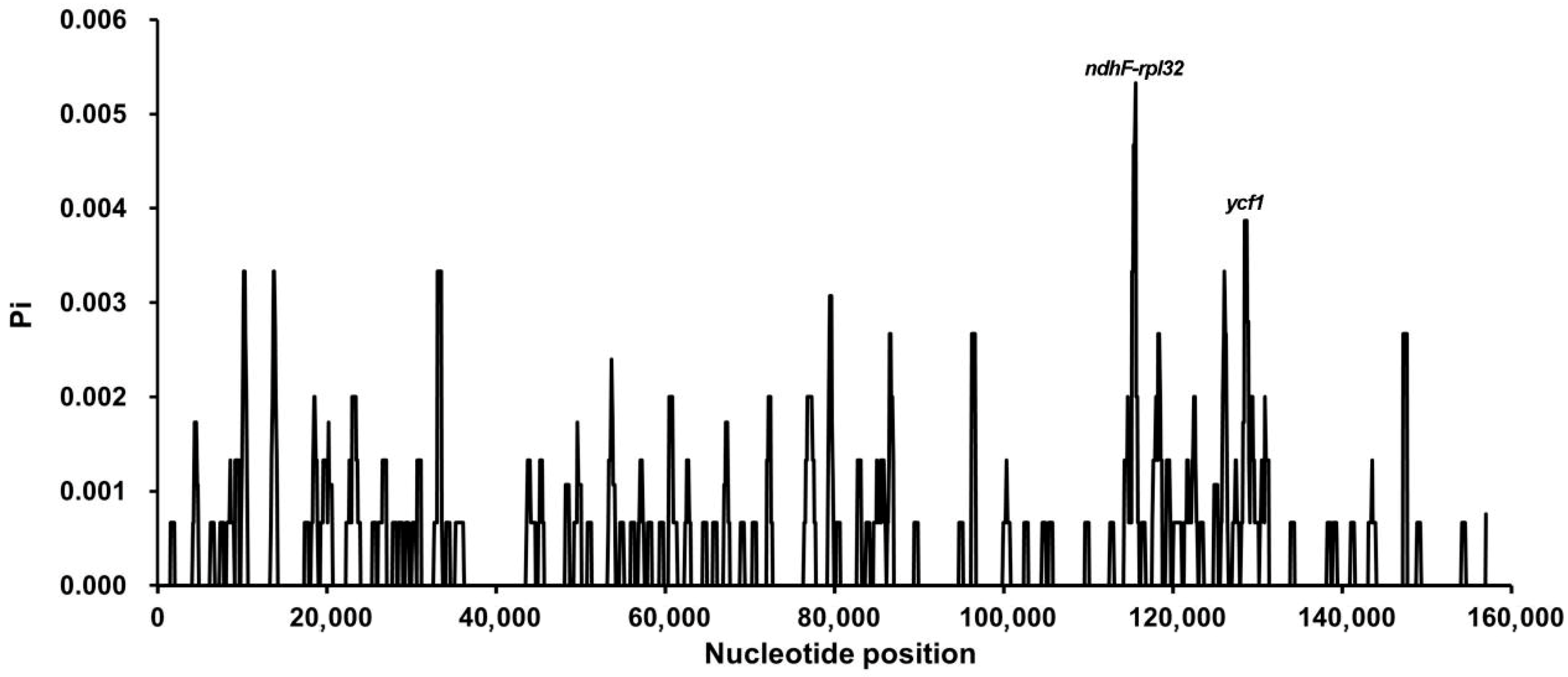 2.5. Nucleotide Diversity, Sequence Similarity, and Synteny Analysis