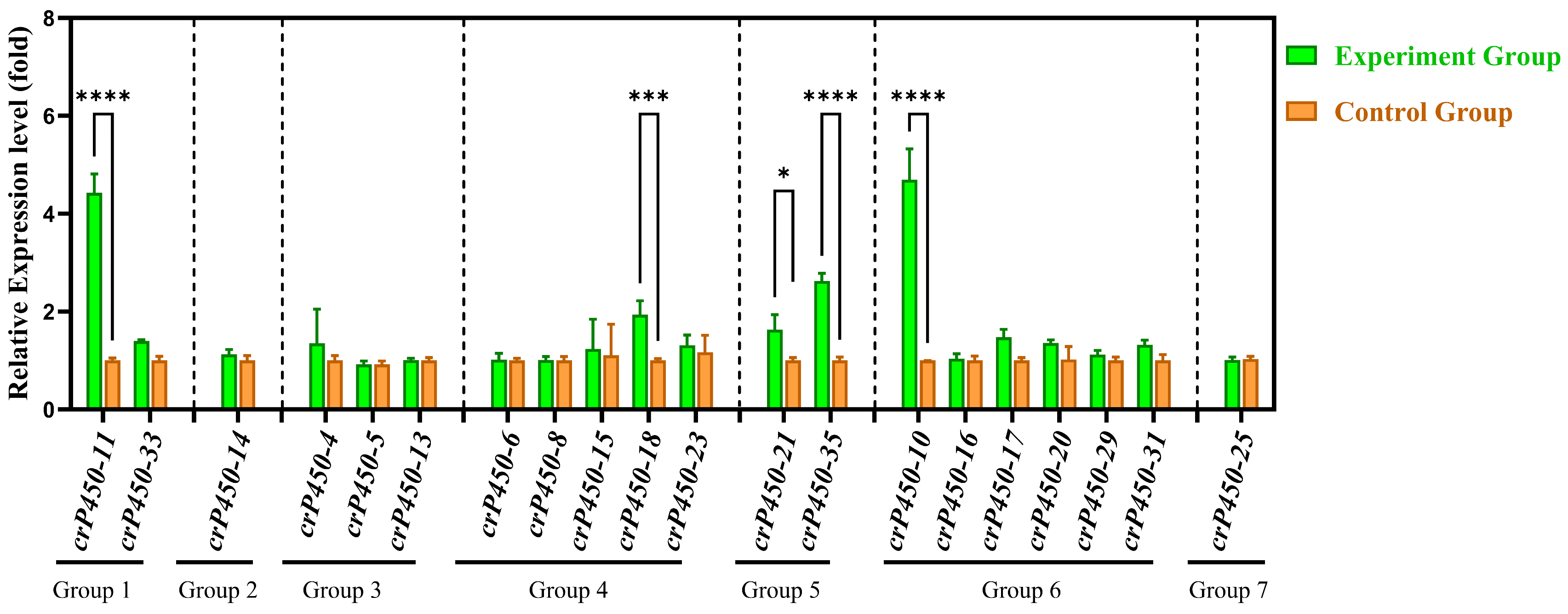 2.9. Quantitative Real-Time PCR Analysis of crP450 Gene Expression