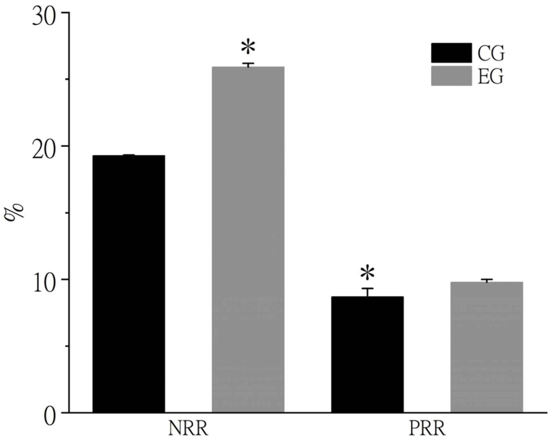 | EF | 1.24 ± 0.14 * | 5.36 ± 0.62 | 5.45 ± 0.14 * | 4.39 ± 0.18 | |