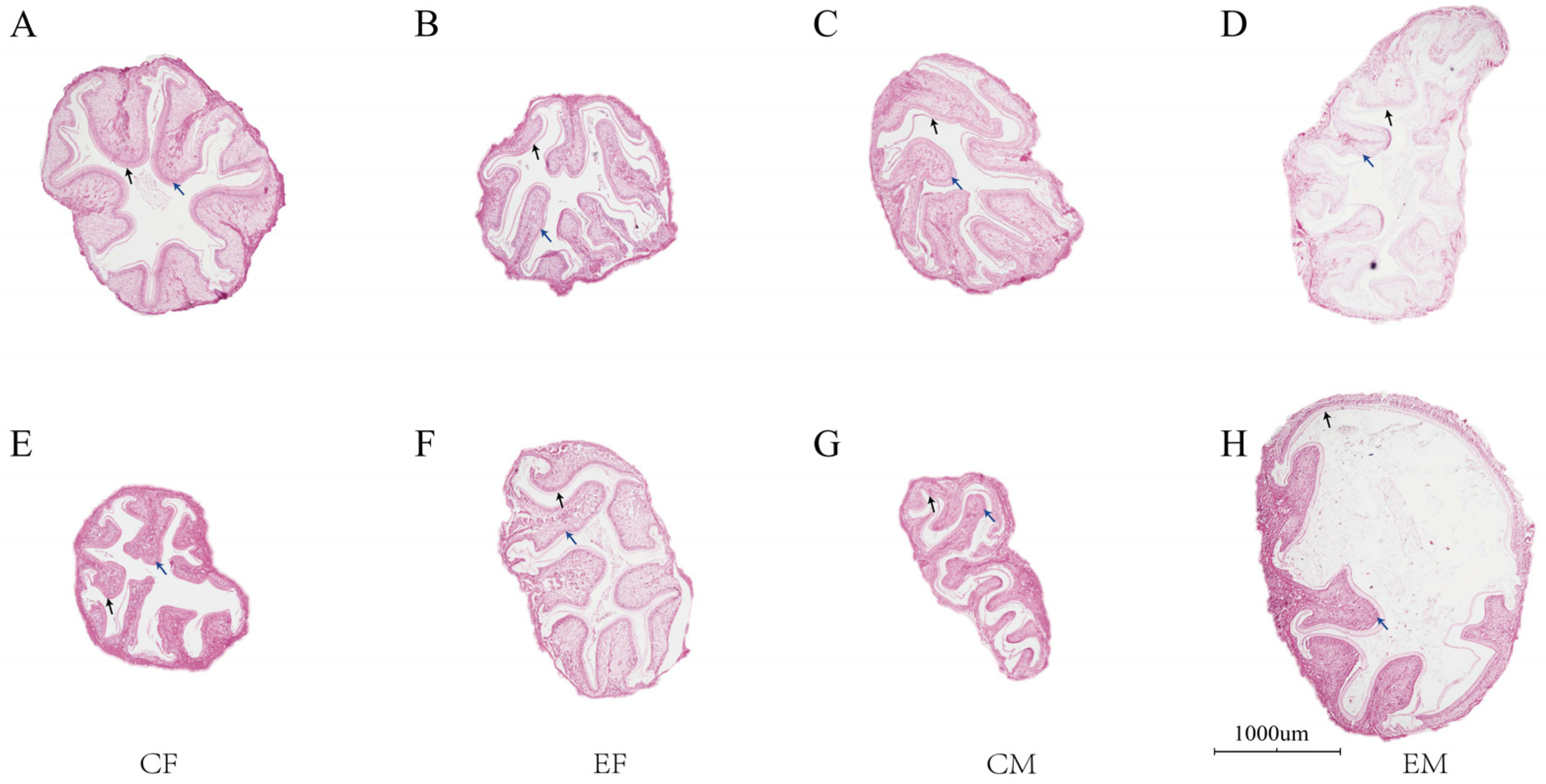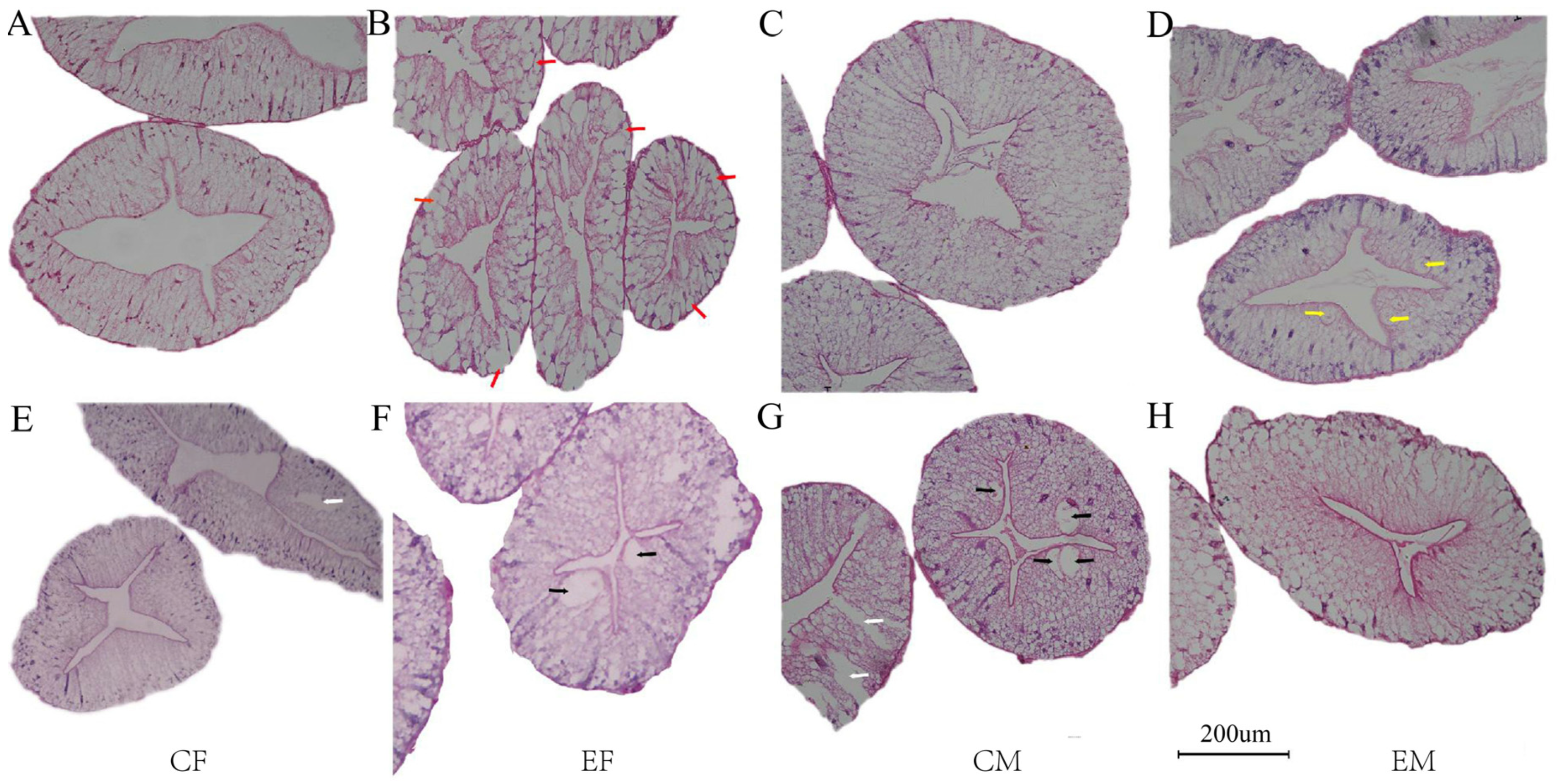 3.2. Hepatopancreas and Intestinal Health of Chinese Mitten Crab Under Two Feeding Regimes