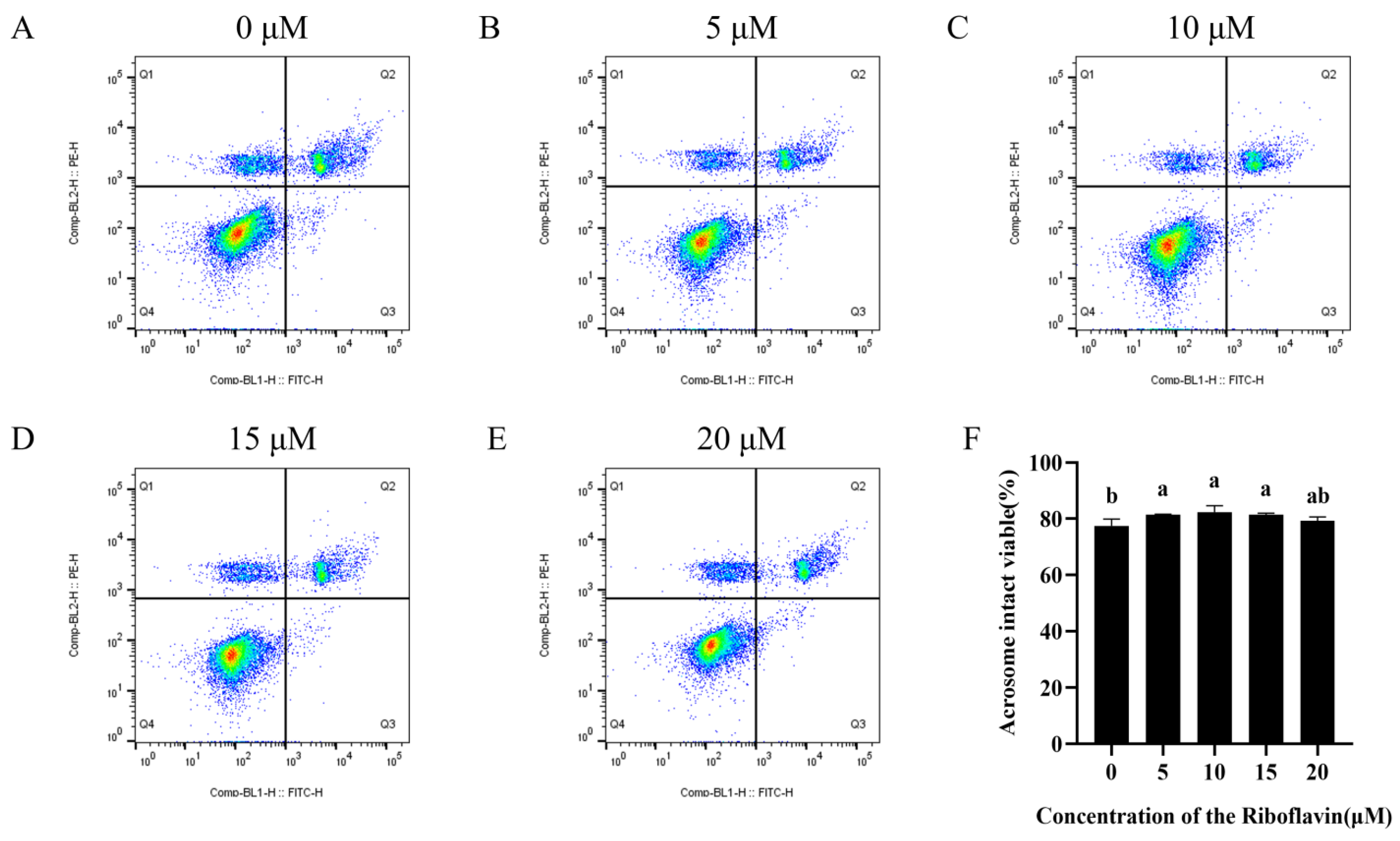 3.2. Riboflavin Improved the Sperm Viability and Acrosome Integrity