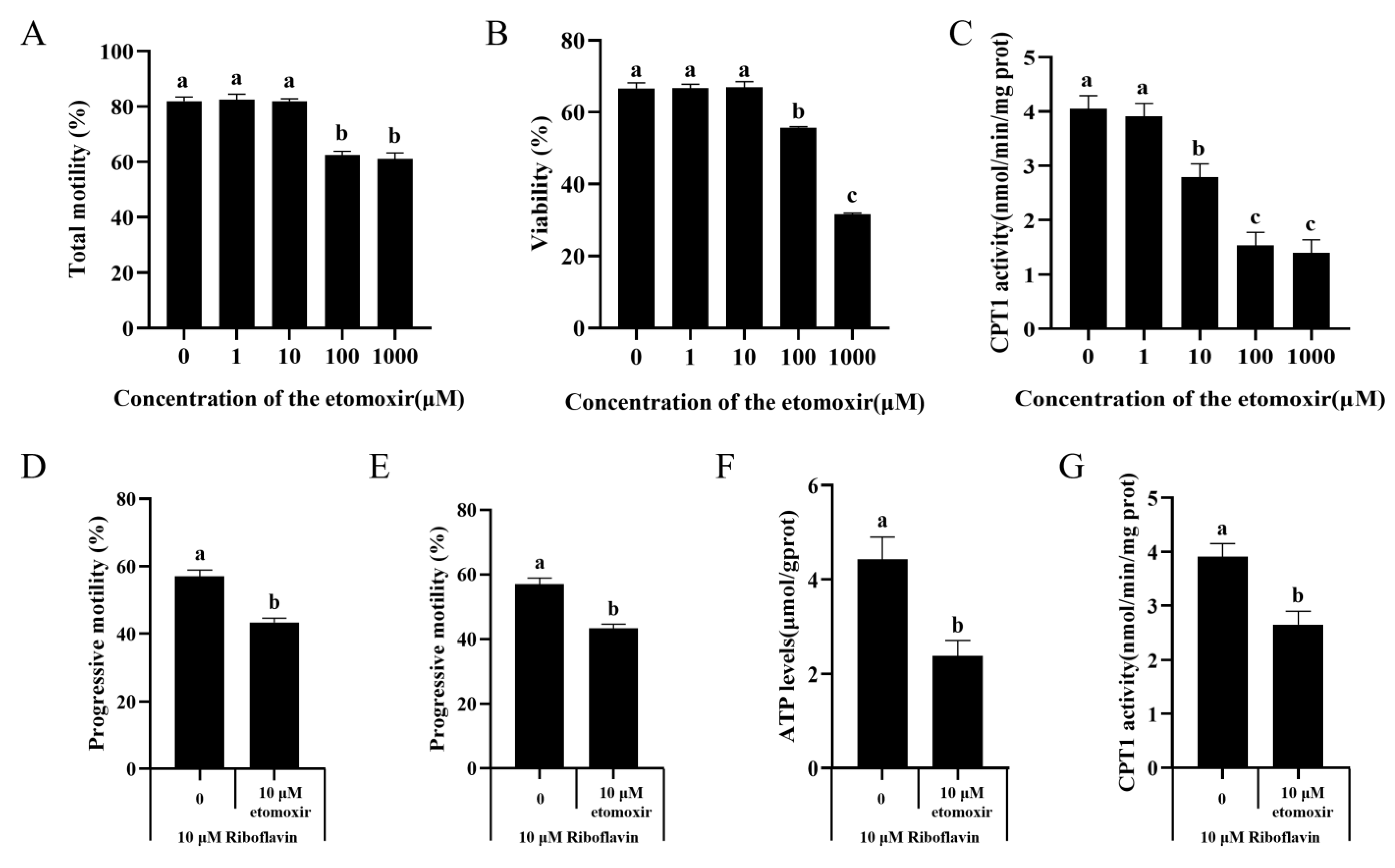 3.6. Effect of Selective CPT1 Inhibitor Etomoxir on Sperm Motility, CPT1 Activity, and ATP Levels