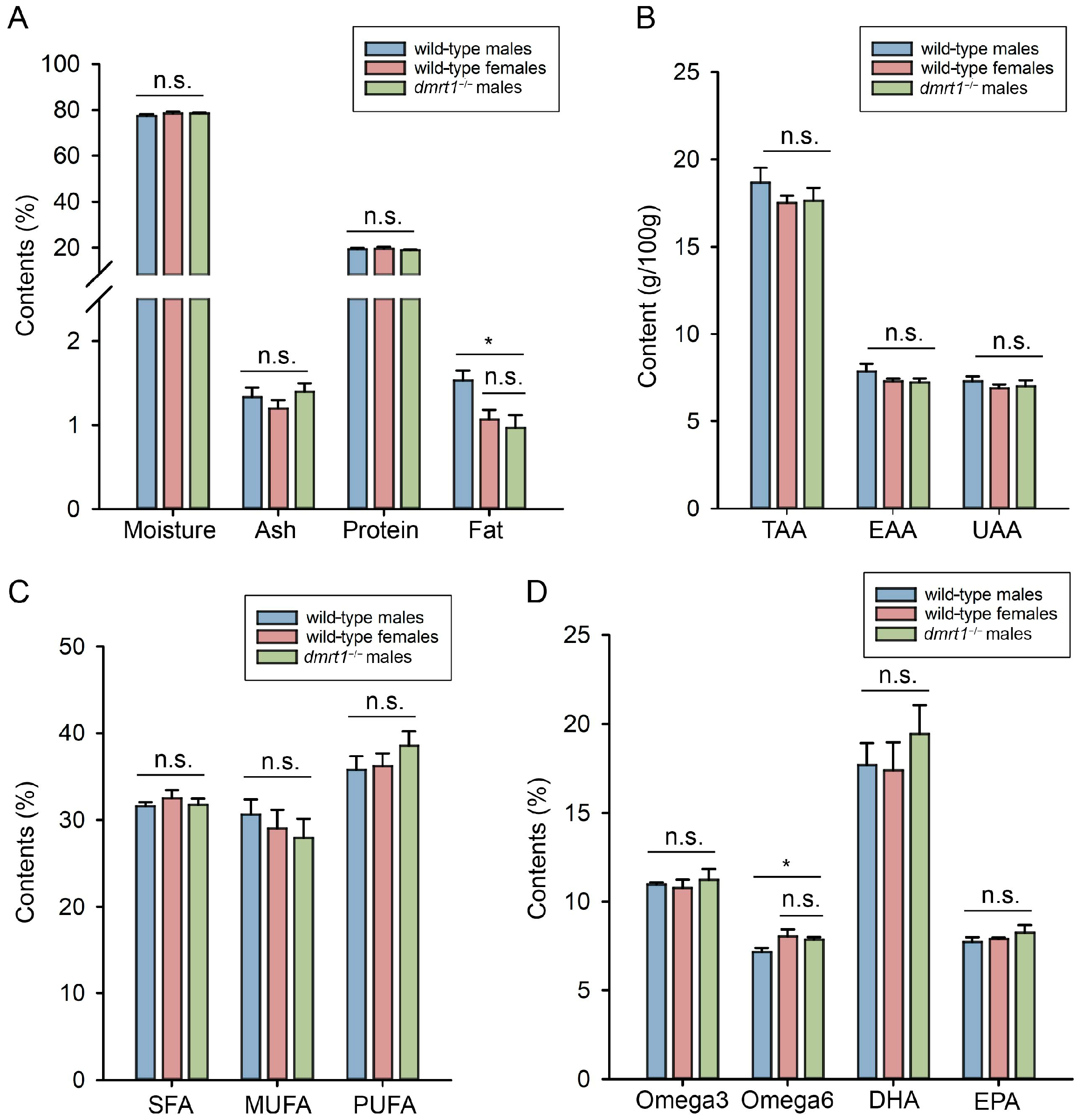 dmrt1 would not markedly alter the muscle nutritional composition in Chinese tongue sole. Similar analysis in