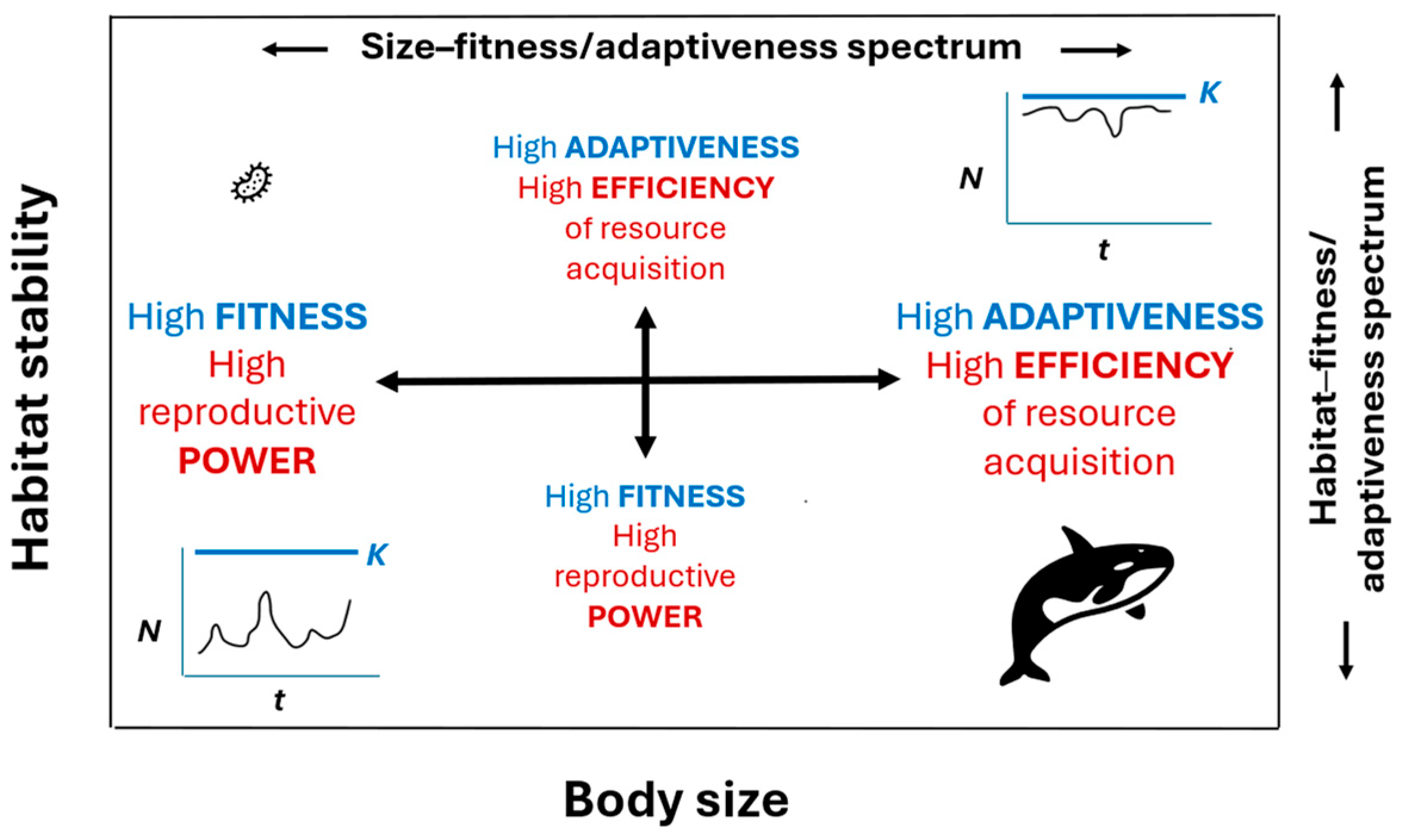 6. Species Diversity and Coexistence Are Enabled by Size and Habitat Spectra of Fitness (Power) and Adaptiveness (Efficiency)