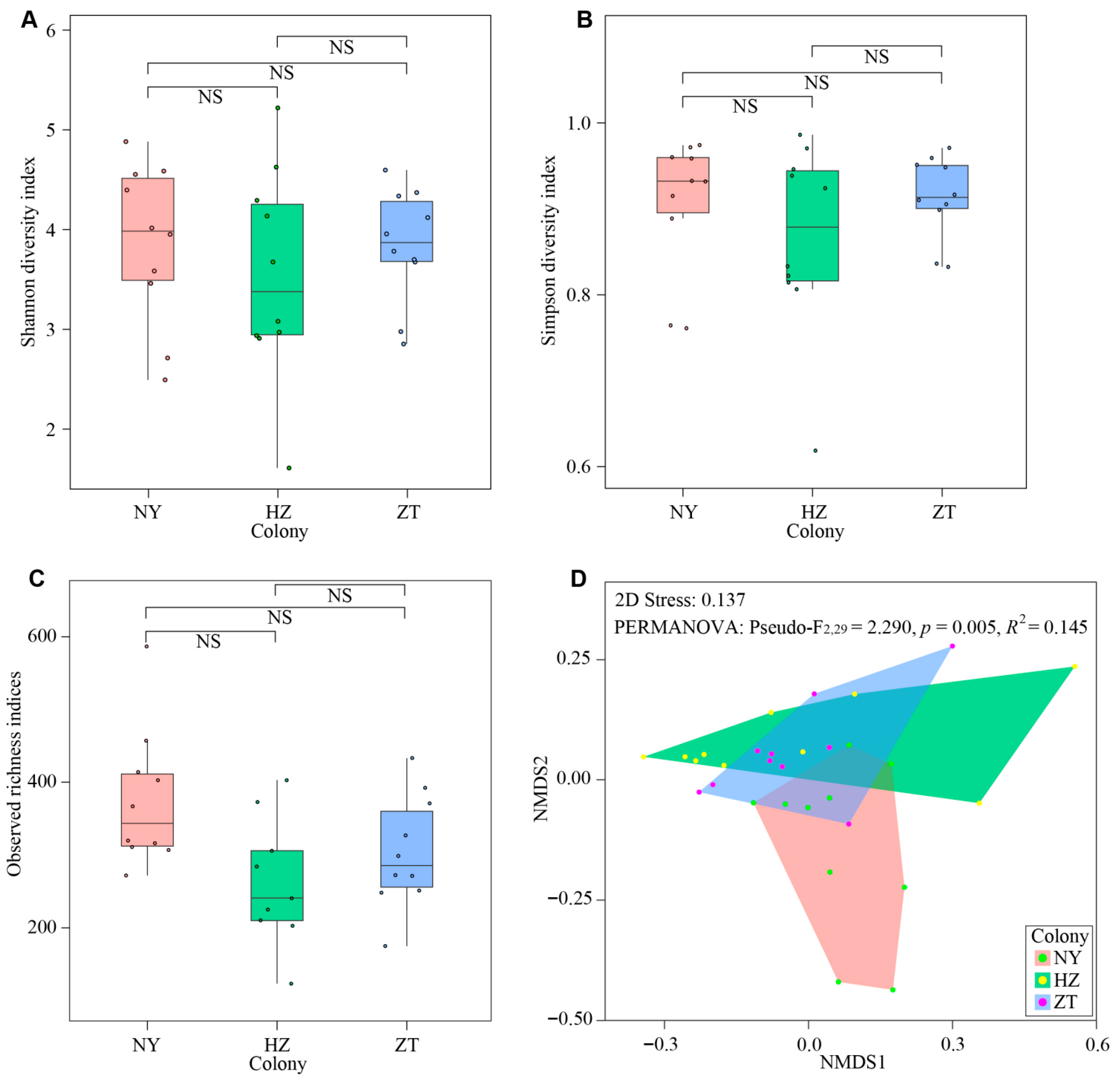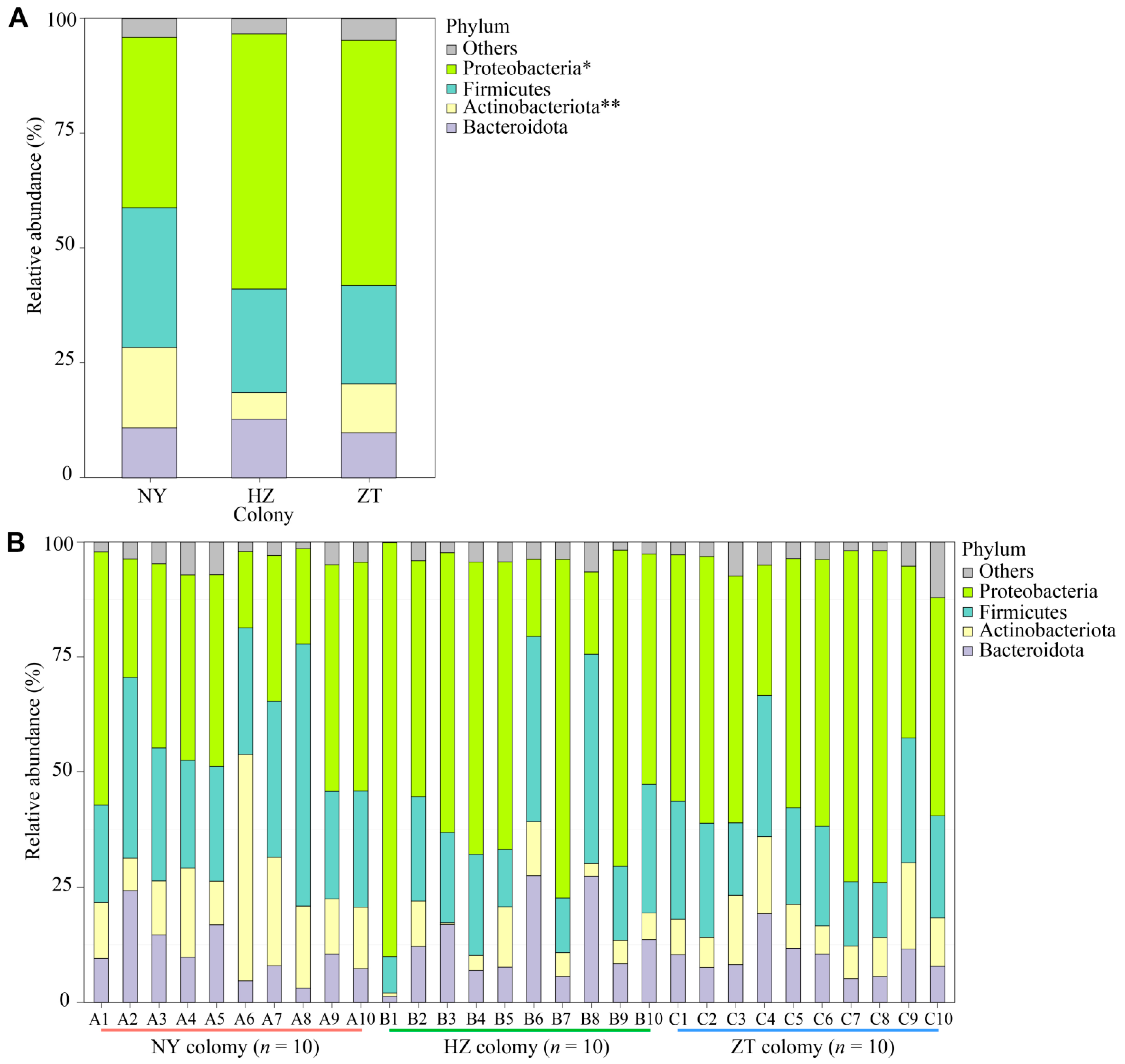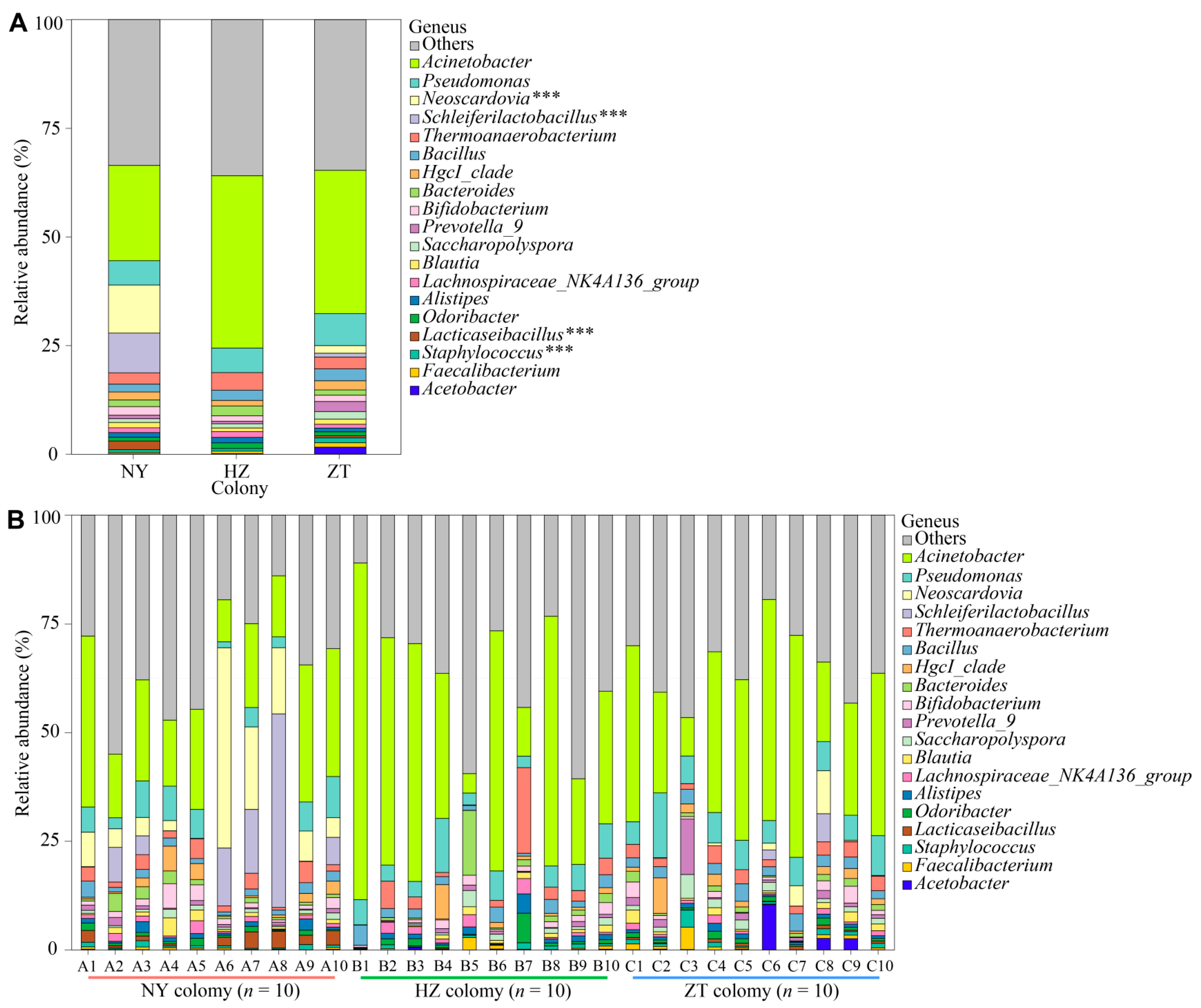 3.2. Variation in the Gland Microbiota Across Colonies