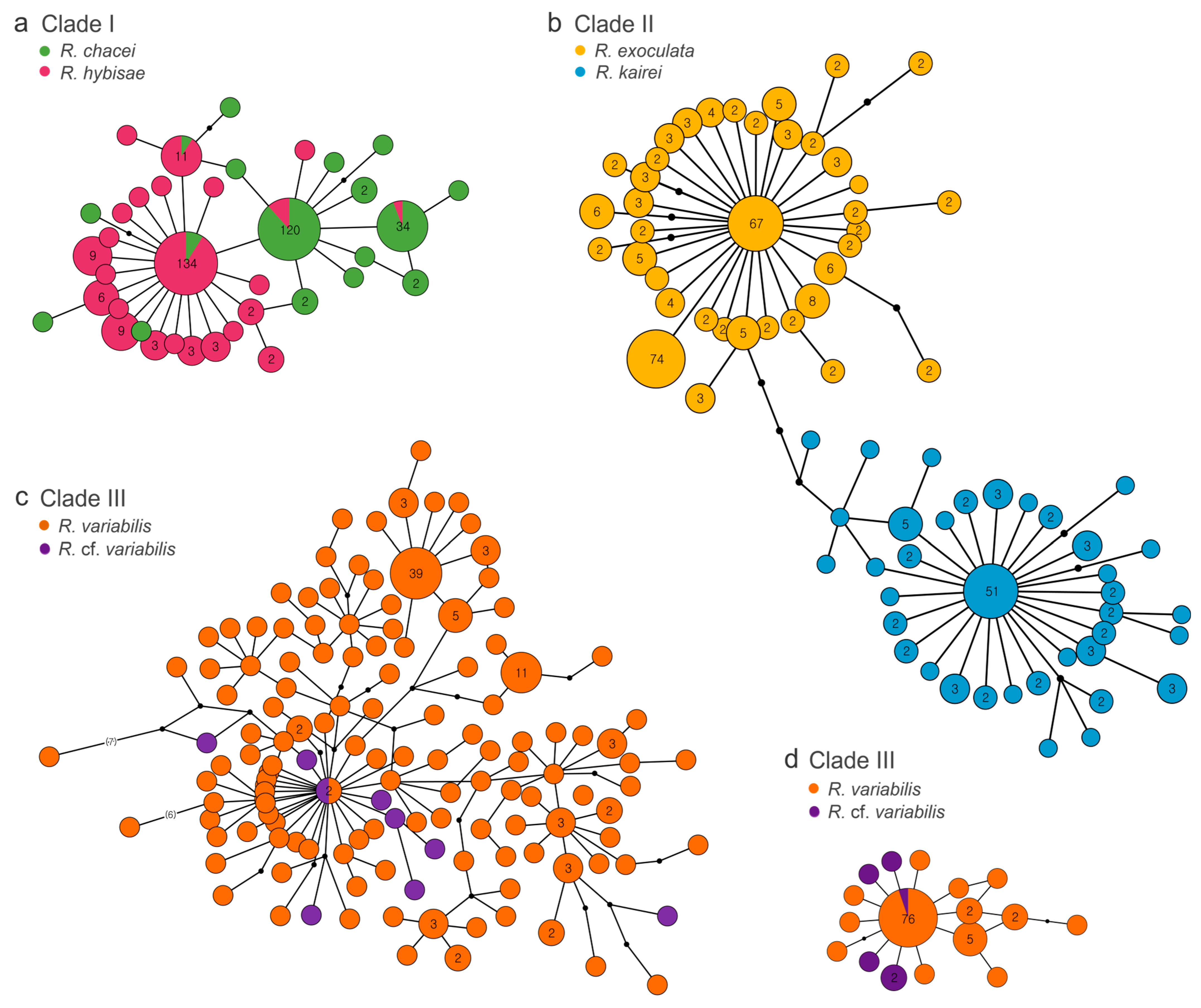 | Clade III | R. variabilis (<5 Mya) | SWP | High or low | Non-enlarged | Partially dependent | G > C | [32,33,42,73] |
