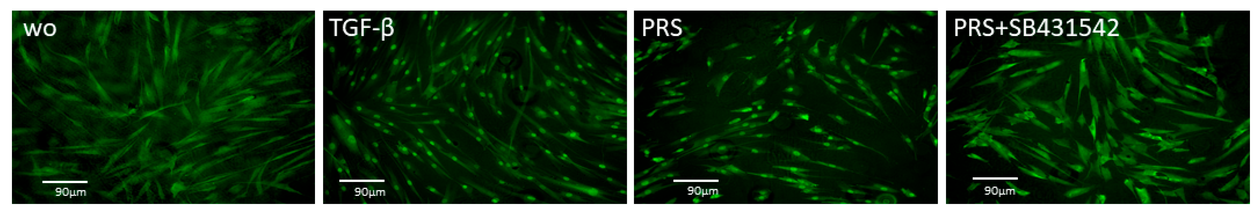 3.4. IL11 and PRG4 Expression and Smad2/3 Staining in Gingival Fibroblasts Exposed to PRS