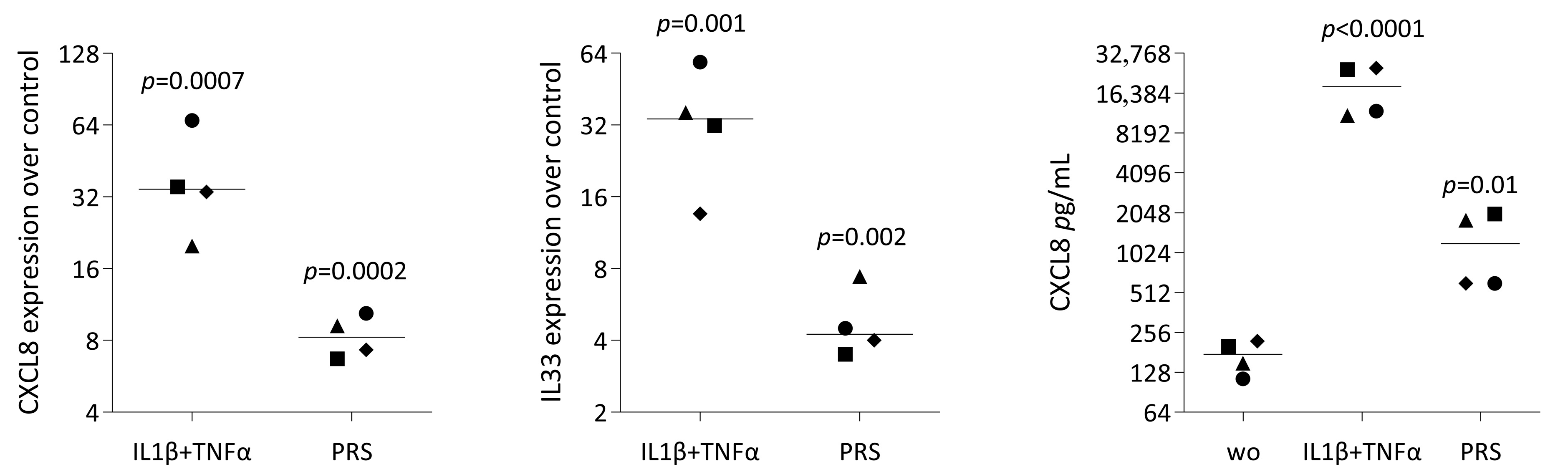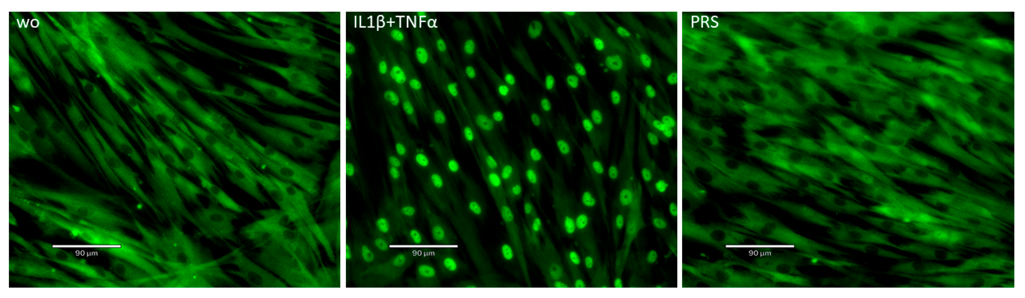 3.5. CXCL8 and IL33 Expression and p65 Staining in Gingival Fibroblasts Exposed to PRS