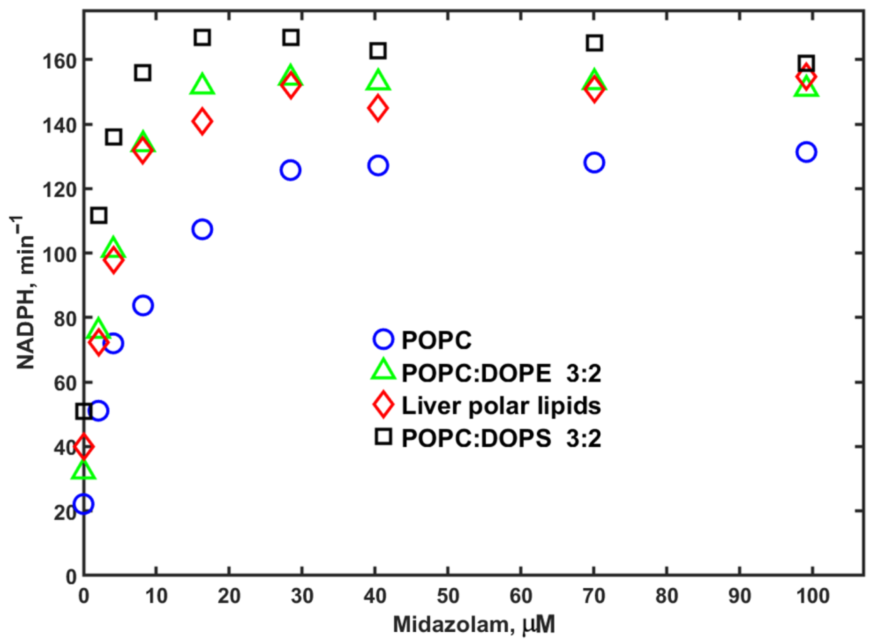 - Liu, K.C.; Hughes, J.M.X.; Hay, S.; Scrutton, N.S. Liver microsomal lipid enhances the activity and redox coupling of colocalized cytochrome P450 reductase-cytochrome P450 3A4 in nanodiscs. FEBS J. 2017, 284, 2302–2319. [Google Scholar] [CrossRef]