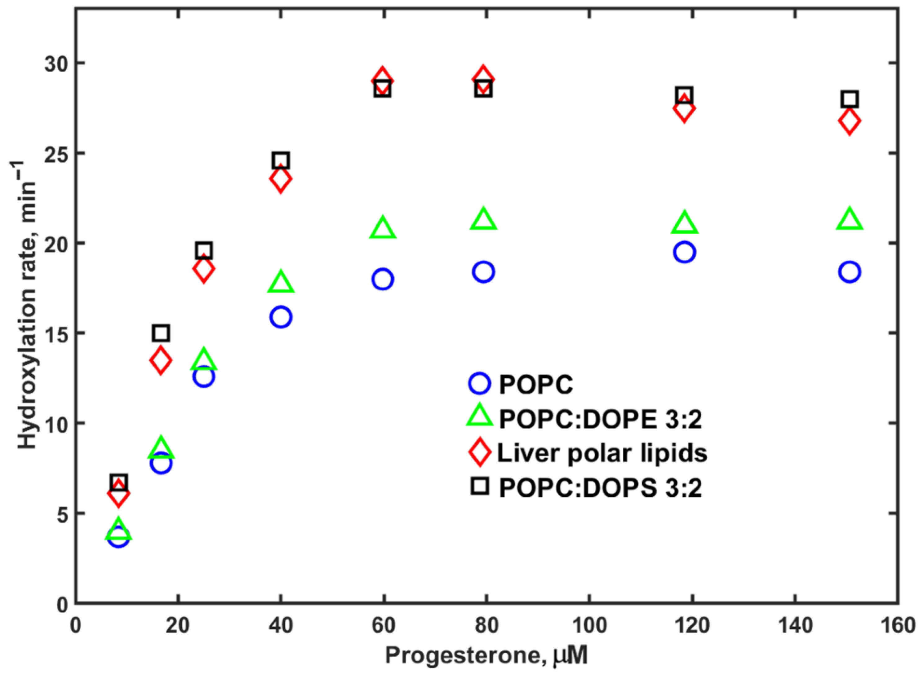 - Sumangala, N.; Im, S.C.; Valentín-Goyco, J.; Auchus, R.J. Influence of cholesterol on kinetic parameters for human aromatase (P450 19A1) in phospholipid nanodiscs. J. Inorg. Biochem. 2023, 247, 112340. [Google Scholar] [CrossRef]