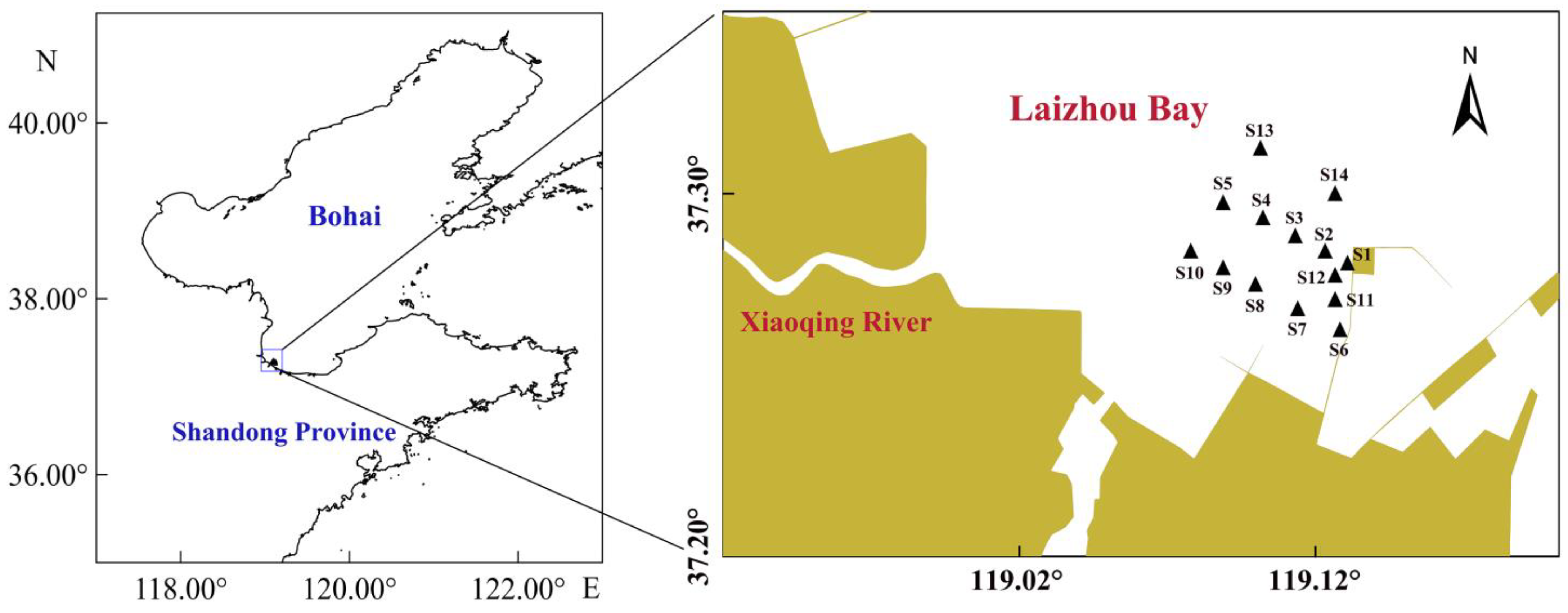 - Chen, G.Q.; Yi, L.; Chen, S.L.; Huang, H.J.; Liu, Y.X.; Xu, Y.H.; Cao, J.R. Partitioning of grain-size components of estuarine sediments and implications for sediment transport in southwestern Laizhou Bay, China. Chin. J. Oceanol. Limnol. 2013, 31, 895–906. [Google Scholar] [CrossRef]