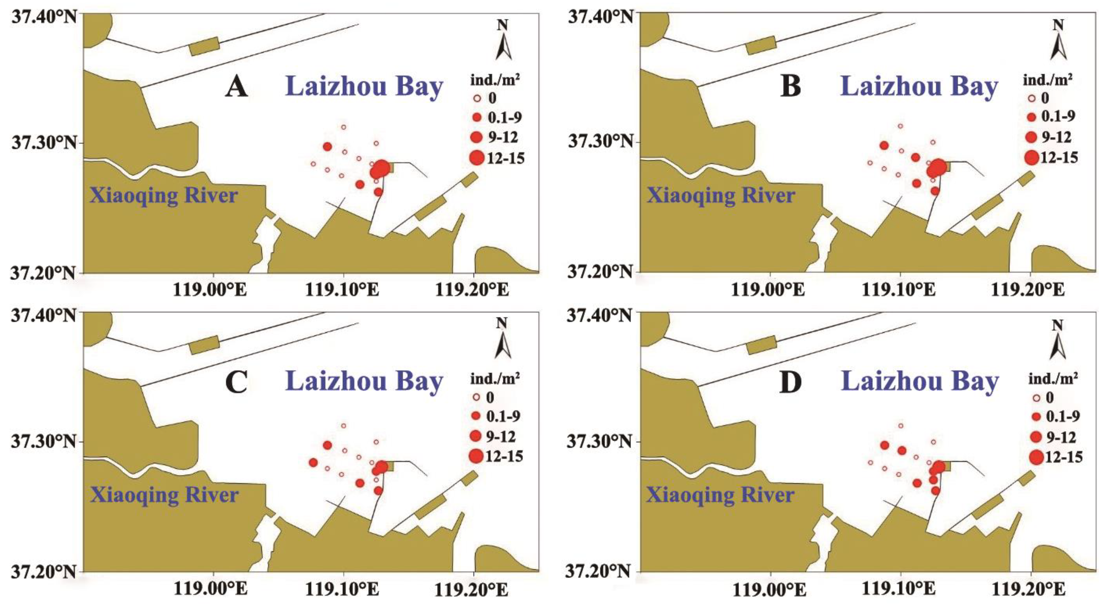 3.2. Spatial Distribution of Ruditapes philippinarum