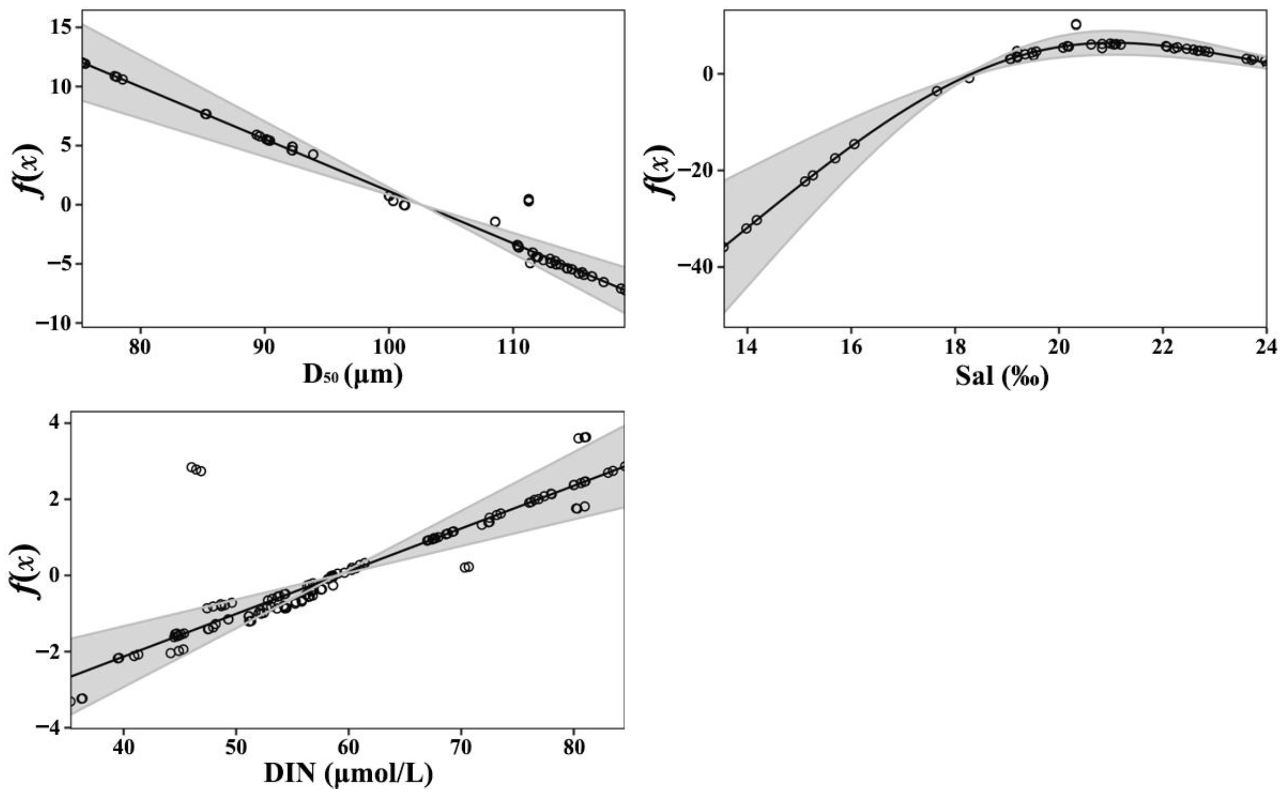 - Liu, L.; Li, A.; Zhu, L.; Xue, S.; Li, J.; Zhang, C.; Yu, W.; Ma, Z.; Zhuang, H.; Jiang, Z.; et al. The application of the generalized additive model to represent macrobenthos near Xiaoqing estuary, Laizhou Bay. Biology 2023, 12, 1146. [Google Scholar] [CrossRef]