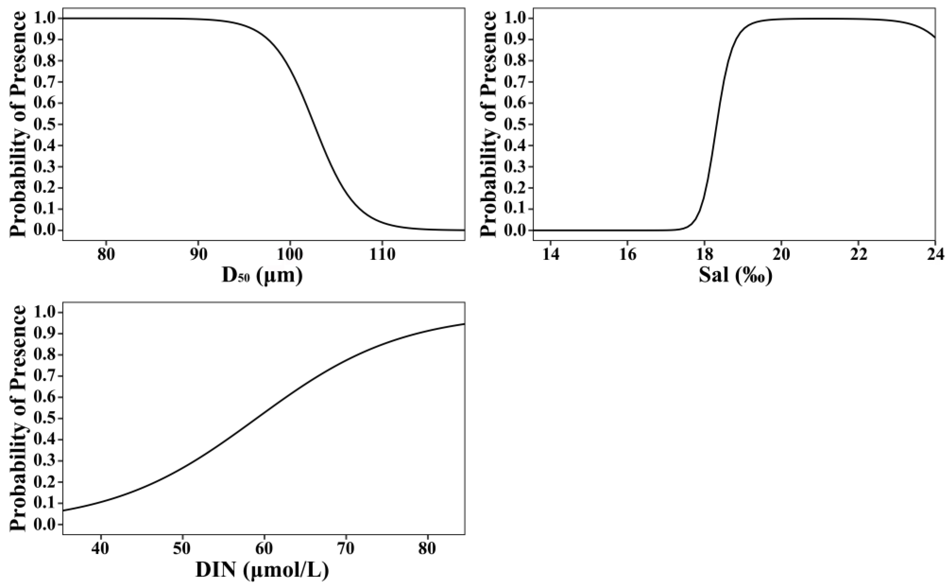 3.6. Factors Affecting the Distribution Probability of Ruditapes philippinarum