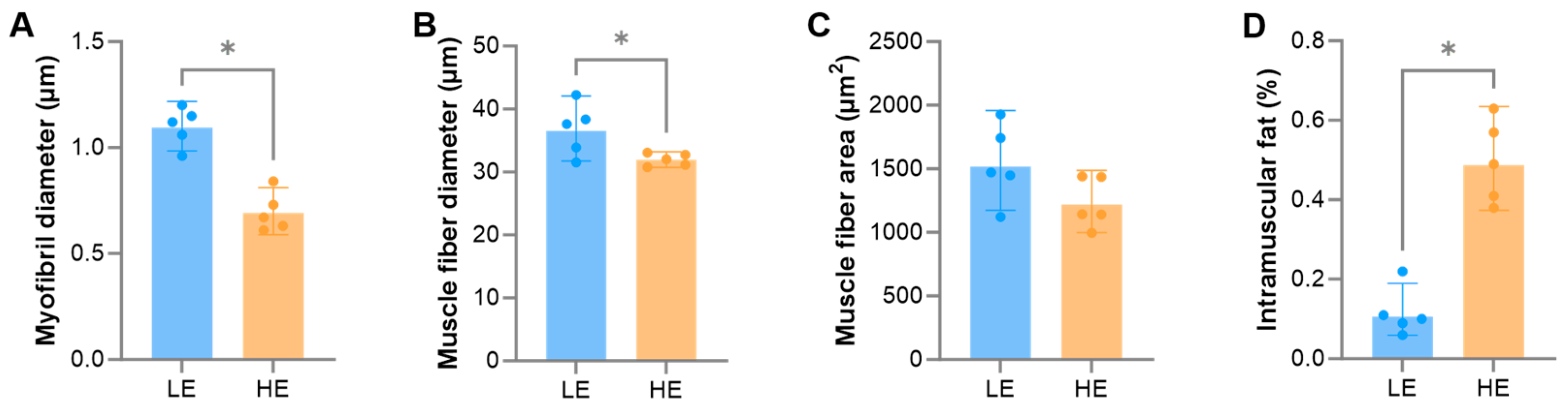 2.2. Morphological Structure and Intramuscular Fat Content Analysis