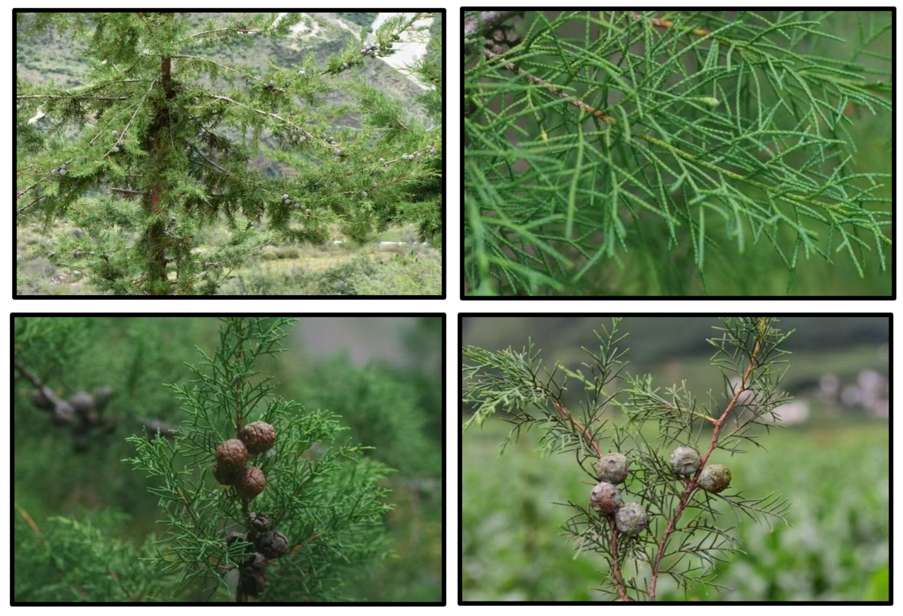 - Li, J.; Milne, R.I.; Ru, D.; Miao, J.; Tao, W.; Zhang, L.; Xu, J.; Liu, J.; Mao, K. Allopatric Divergence and Hybridization within Cupressus Chengiana (Cupressaceae), a Threatened Conifer in the Northern Hengduan Mountains of Western China. Mol. Ecol. 2020, 29, 1250–1266. [Google Scholar] [CrossRef]