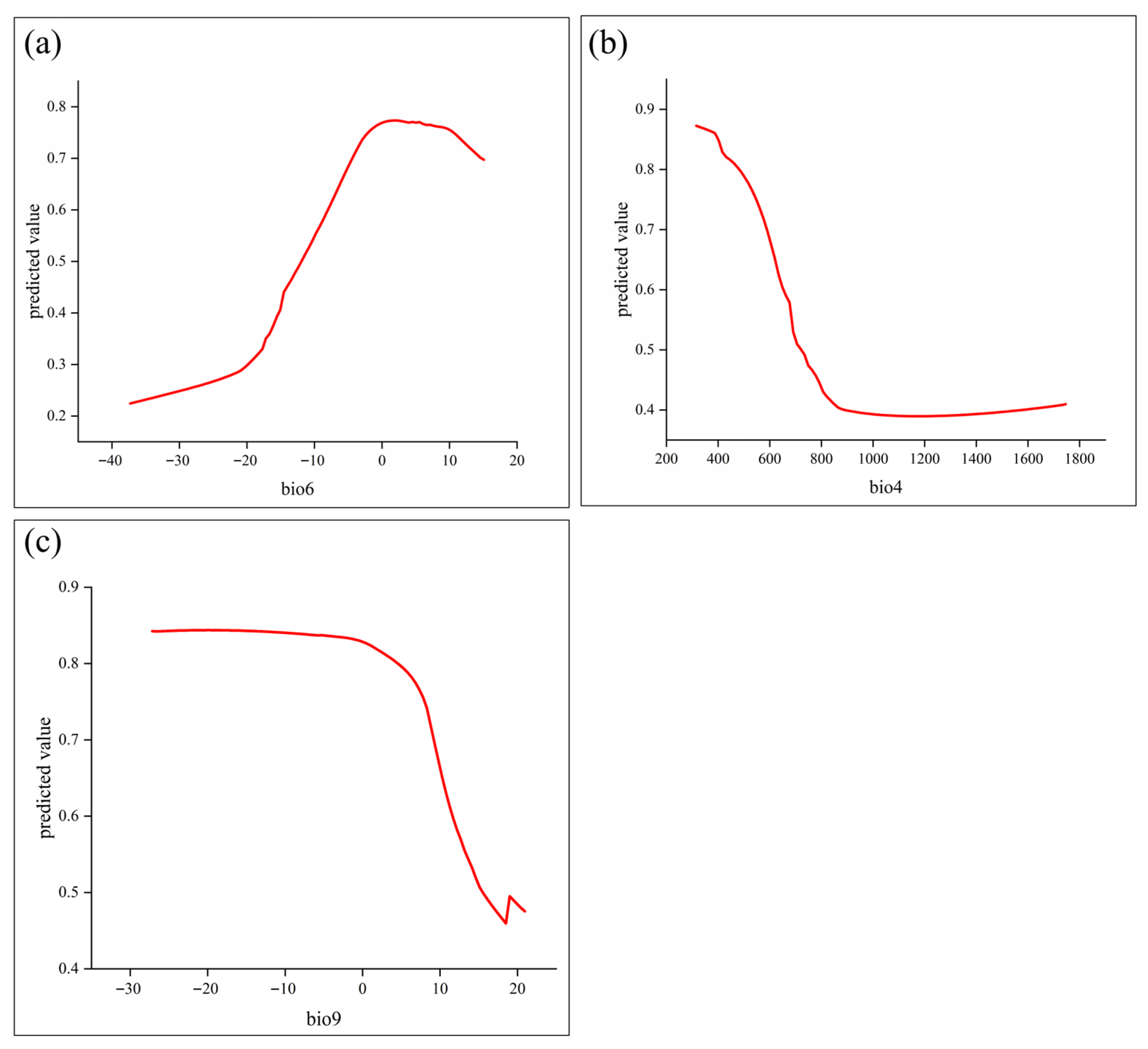 3.2. Environmental Variables Influencing the Potential Geographic Distribution of C. duclouxiana