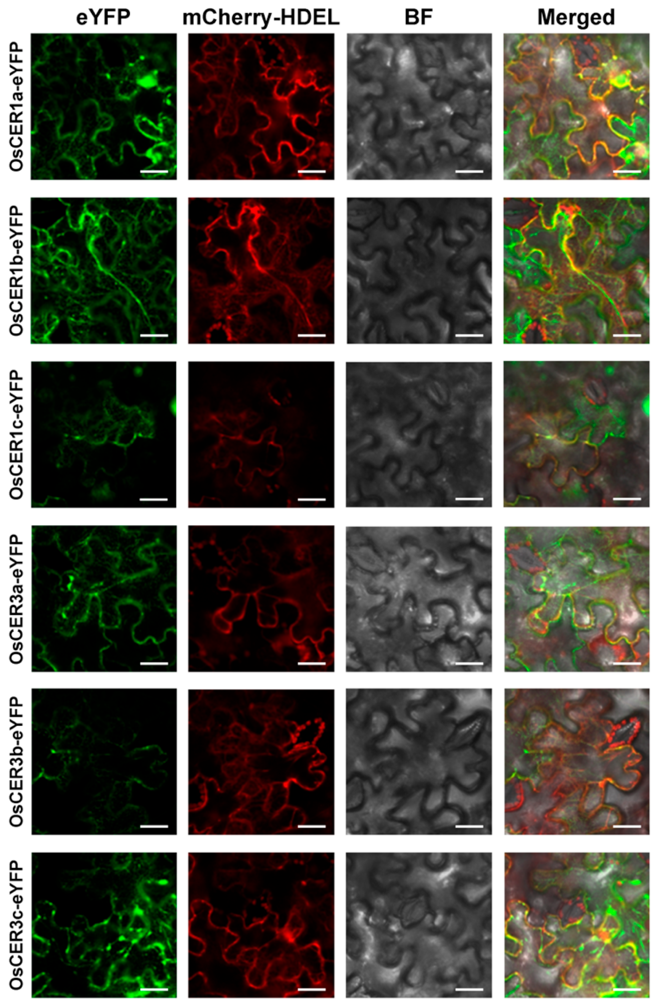 3.4. Subcellular Localization of OsCER1s and OsCER3s