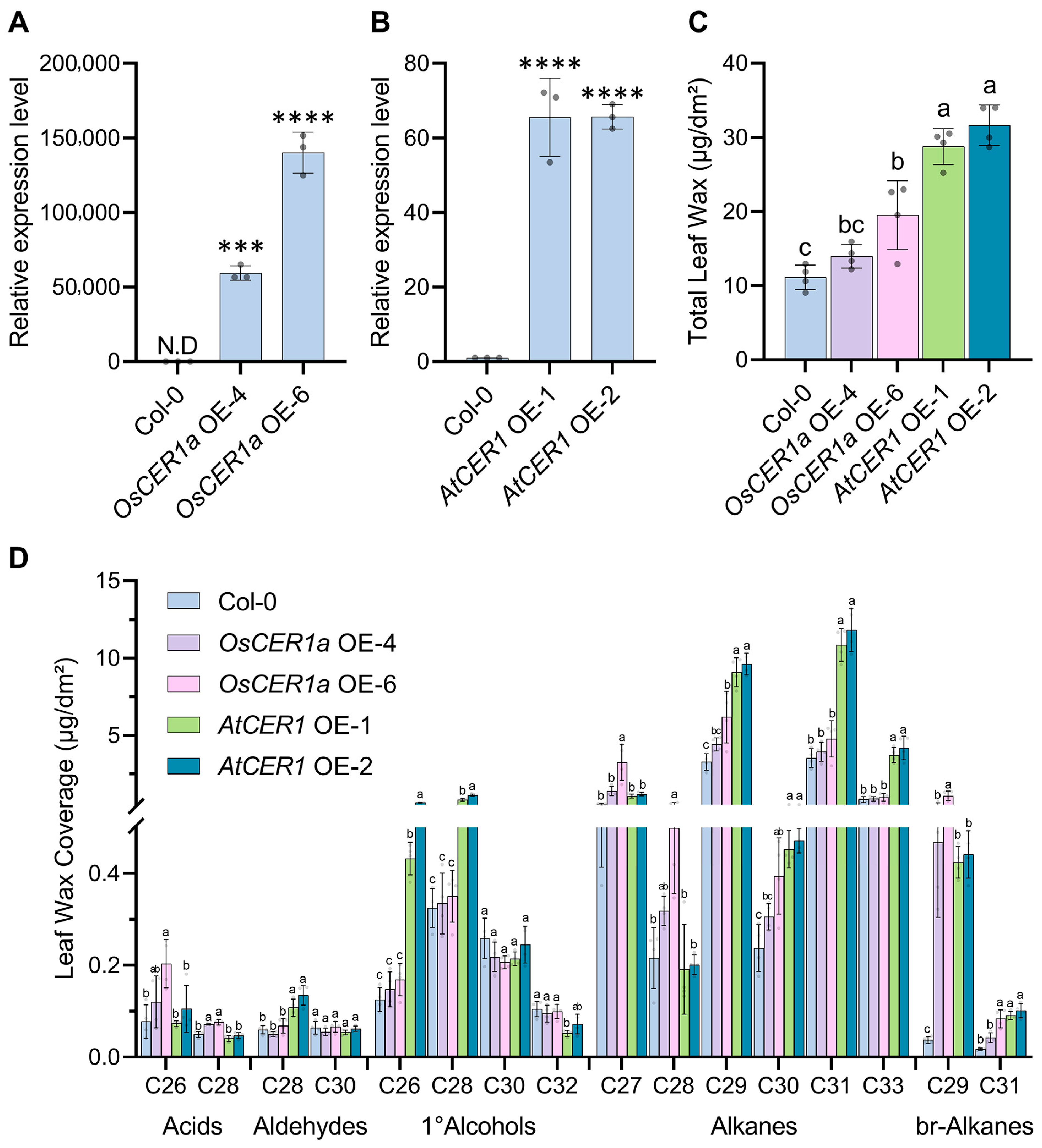 4.4. Functional Divergence Between OsCER1a and AtCER1 in Arabidopsis Wax Synthesis