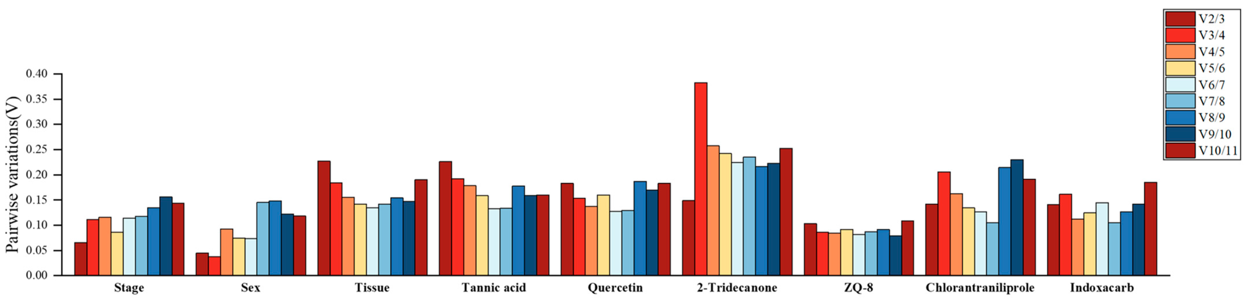 3.5. Stability of Candidate Reference Genes Under Insecticide Treatment