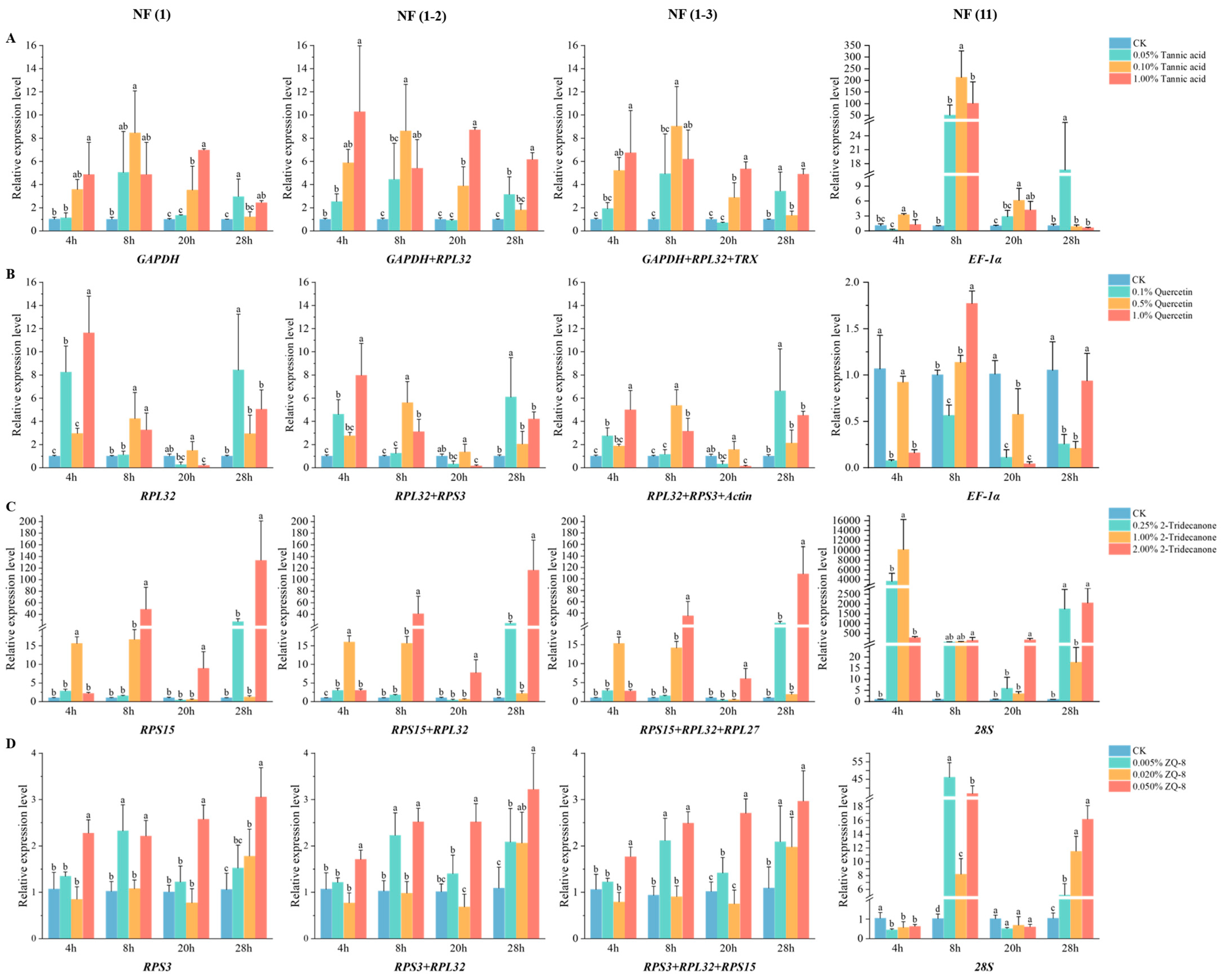 | Tannic Acid | 1 | GAPDH | 1.11 | 28S | 0.68 | 3.03 | RPS15 | 0.336 | GAPDH | 0.38 | GAPDH | 2.11 |