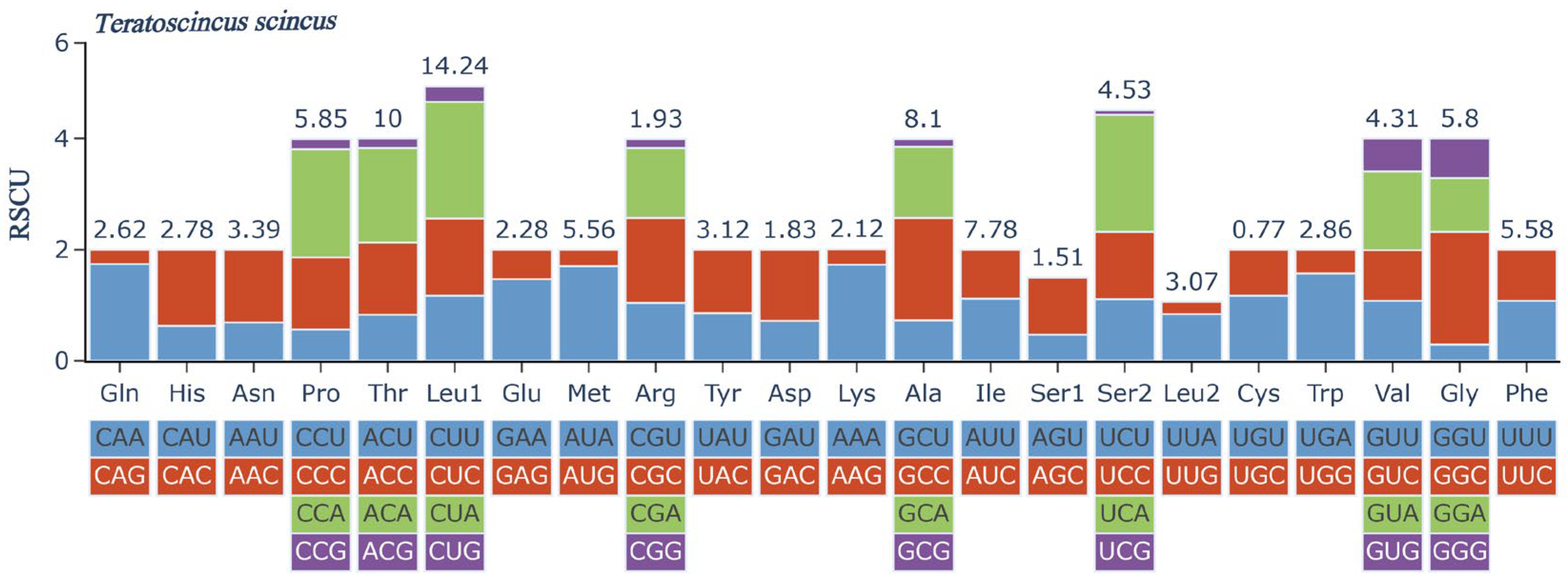 | CUG (L) | 31 | 0.28 | CCG (P) | 10 | 0.18 | CAG (Q) | 13 | 0.26 | CGG (R) | 3 | 0.16 |