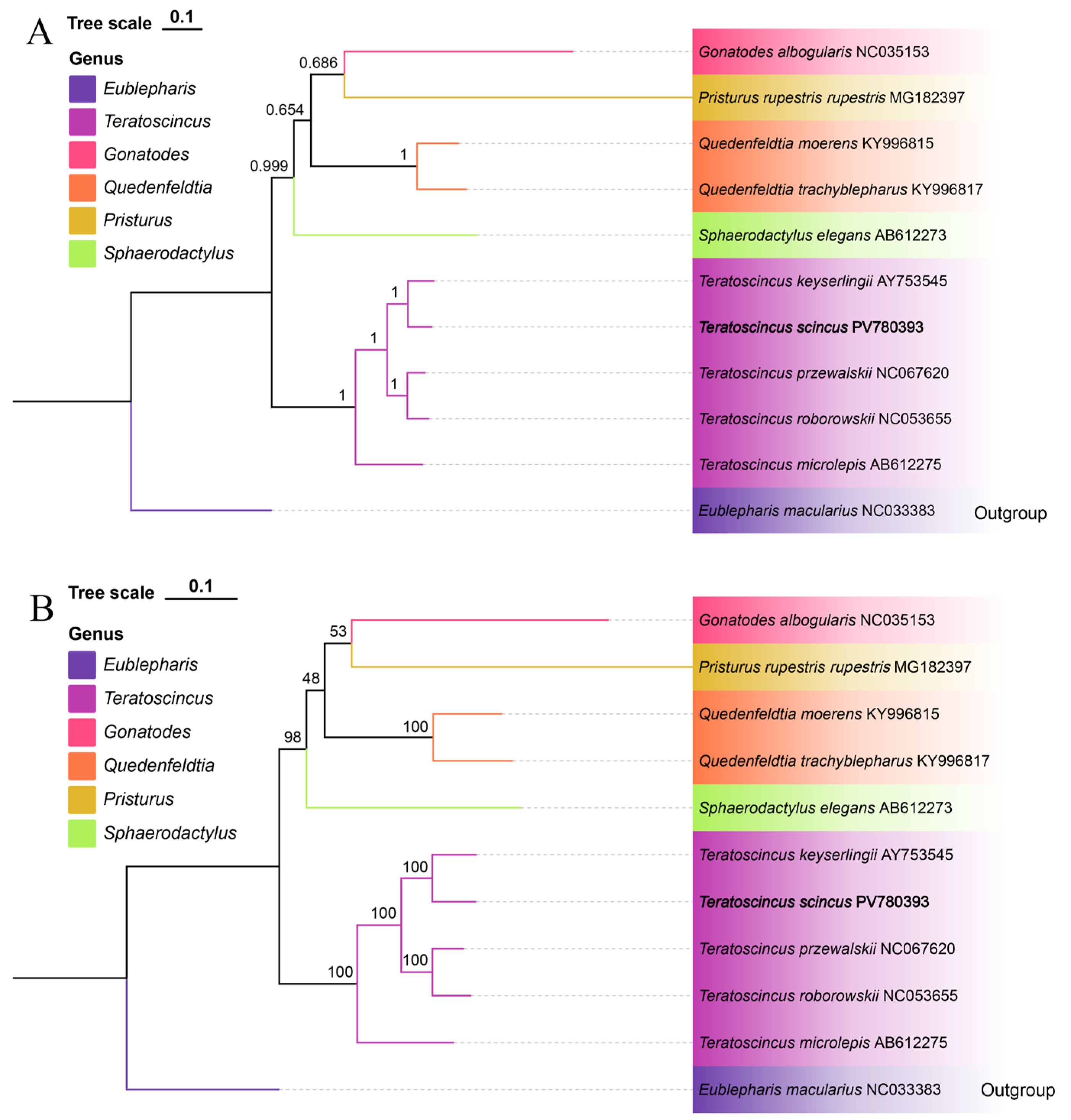 | 10 | Sphaerodactylidae | Teratoscincus | Teratoscincus scincus | PV780393 | 16,943 | 55.8 |