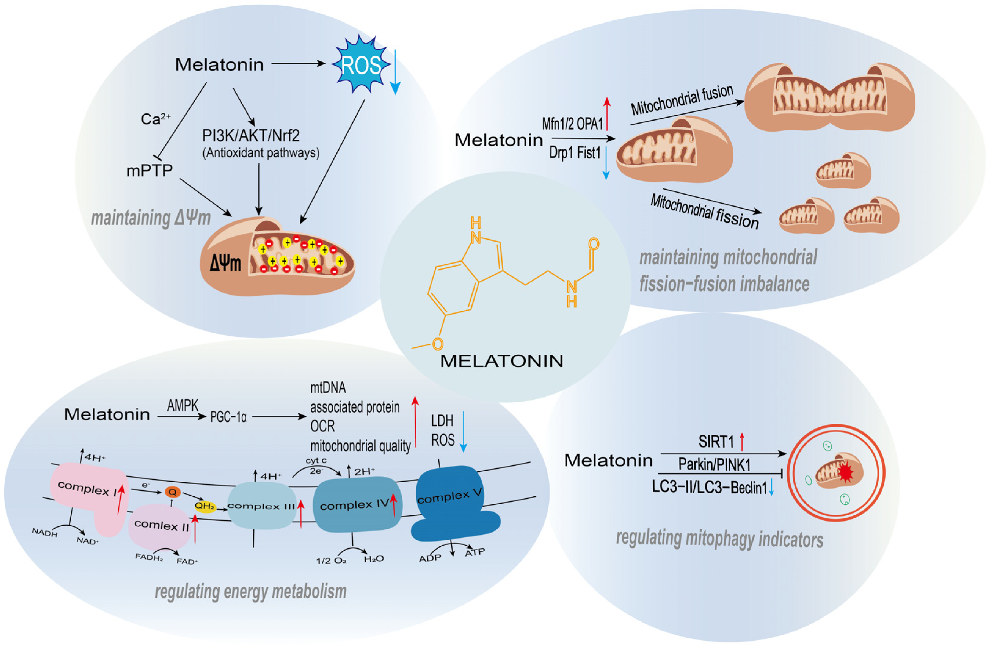 3.2. Melatonin Regulation on Mitochondrial Quality Control