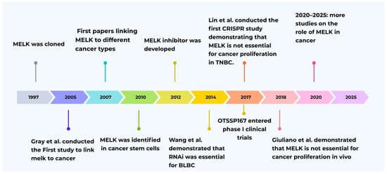 Historical timeline of MELK research evolution [1,9,11,12,13,14,15,16,17].