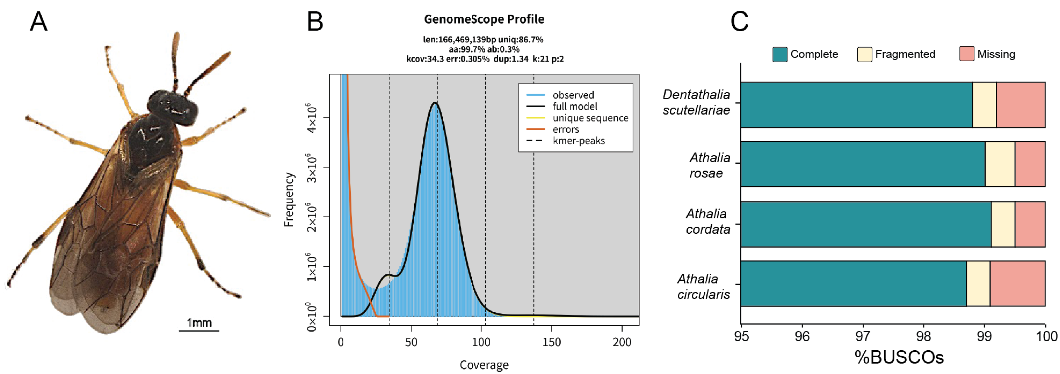 - Halstead, A.; Falk, S.; University of Oxford and Wytham Woods Genome Acquisition Lab; Natural History Museum Genome Acquisition Lab; Darwin Tree of Life Barcoding collective; Wellcome Sanger Institute Tree of Life Management; Samples and Laboratory team; Wellcome Sanger Institute Scientific Operations: Sequencing Operations; Wellcome Sanger Institute Tree of Life Core Informatics team; Tree of Life Core Informatics collective; et al. The genome sequence of a sawfly, Athalia cordata Serville, 1823. Wellcome Open Res. 2025, 10, 15. [Google Scholar] [CrossRef]