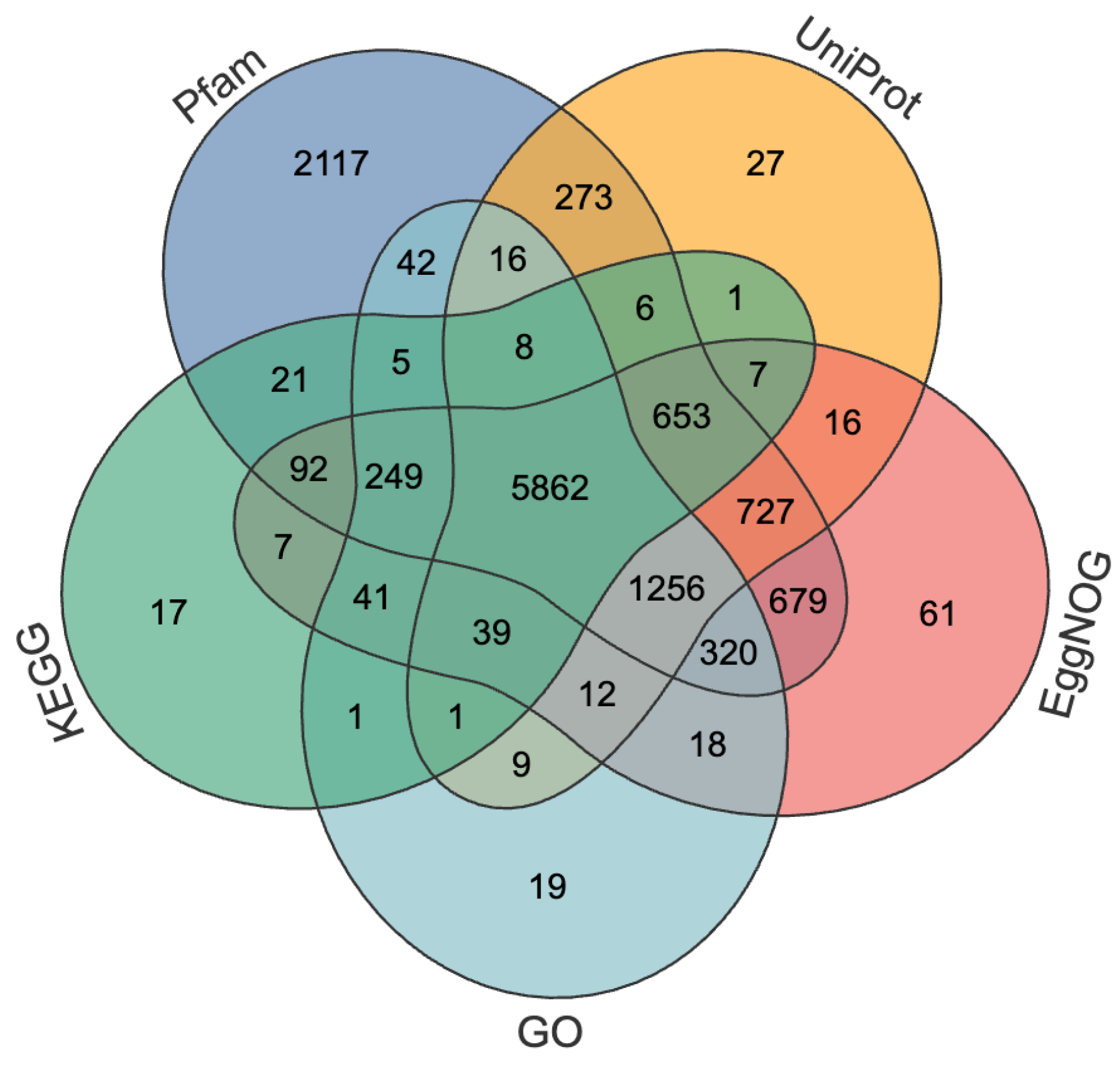 - Cantalapiedra, C.P.; Hernández-Plaza, A.; Letunic, I.; Bork, P.; Huerta-Cepas, J. eggNOG-mapper v2: Functional annotation, orthology assignments, and domain prediction at the metagenomic scale. Mol. Biol. Evol. 2021, 38, 5825–5829. [Google Scholar] [CrossRef]