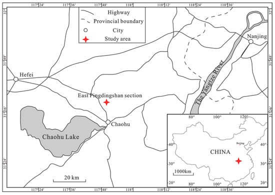 Location of northern Pingdingshan section of the Chaohu area, Anhui Province, eastern China.