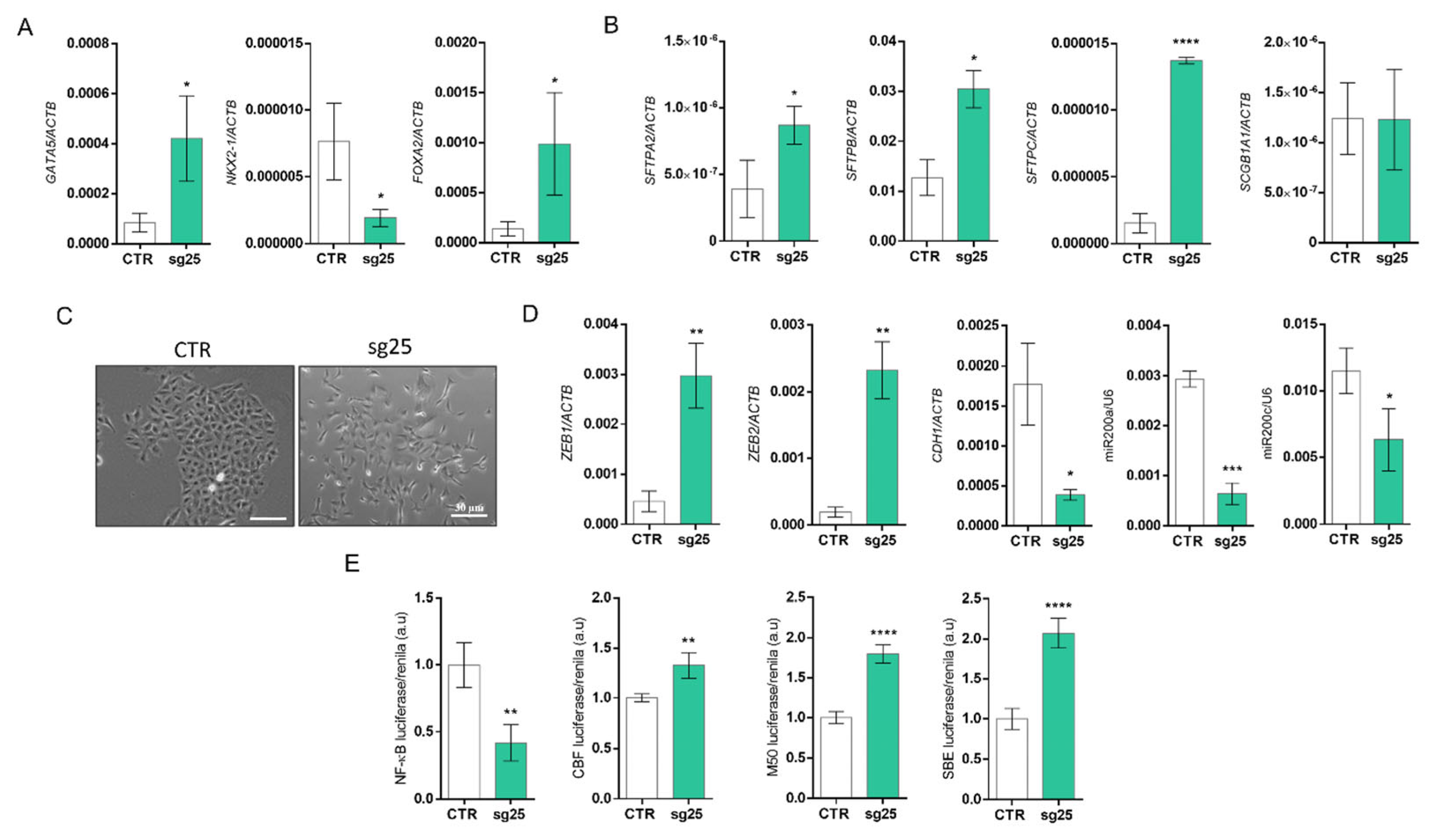 3.2. CRISPR/Cas9-Mediated EZH2 Gene Editing Improves Differentiation and Induces Epithelial-to-Mesenchymal Transition (EMT) in the A549 Cell Line