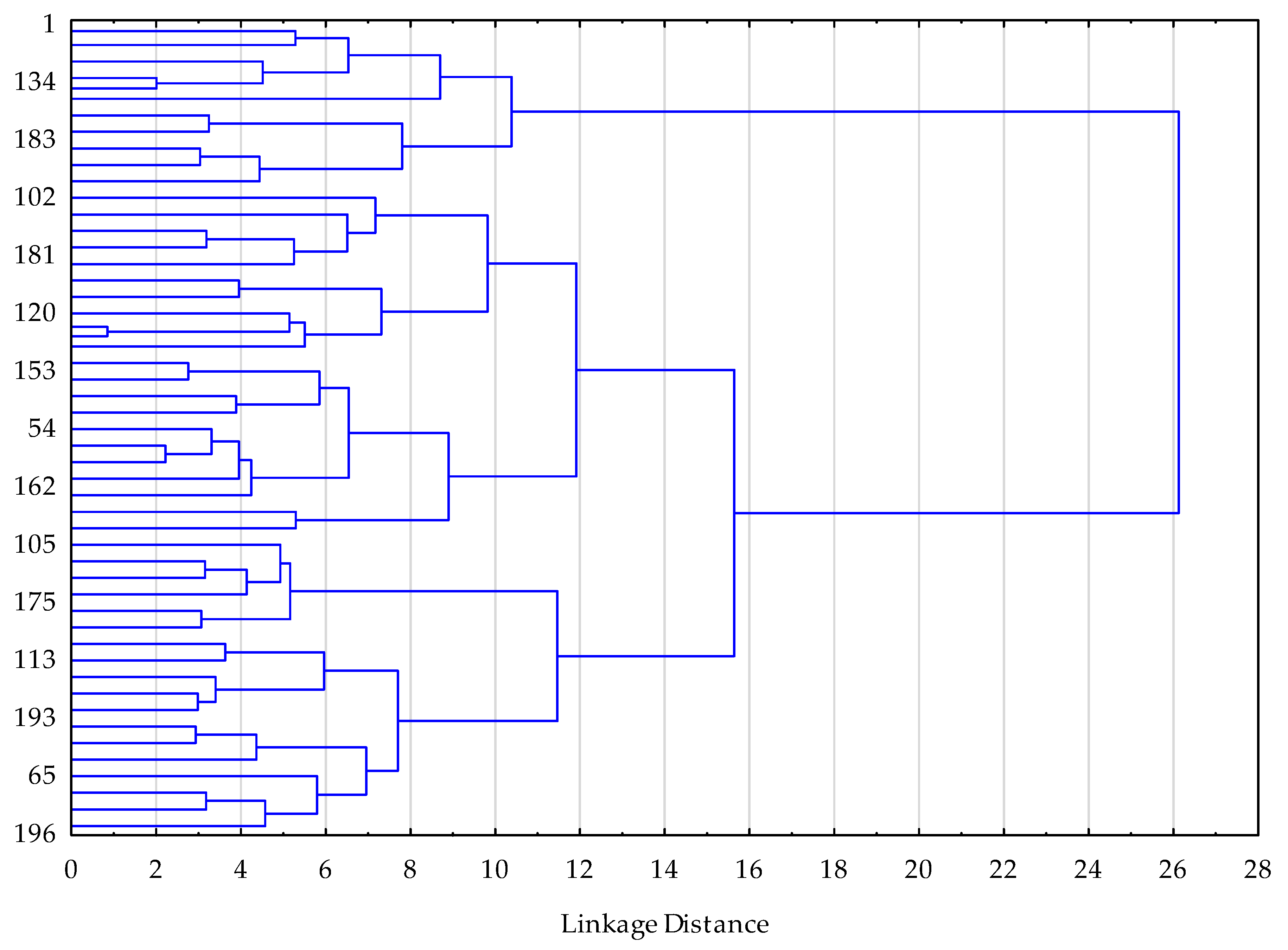 A two-step clustering procedure was applied. First, hierarchical cluster analysis was conducted as an exploratory step to determine the most plausible number of clusters. Visual inspection of the dendrogram and the agglomeration schedule indicated a clear increase in linkage distance when moving from three to two clusters, which supported a three-cluster solution (k = 3) in accordance with an elbow-type criterion. In the second step, k-means clustering was performed using Euclidean distance in STATISTICA, with a maximum of 50 iterations and an initialization procedure aimed at maximizing the distance between cluster centroids. Cluster stability was assessed indirectly by examining the reproducibility of the cluster structure across successive iterations of the algorithm.