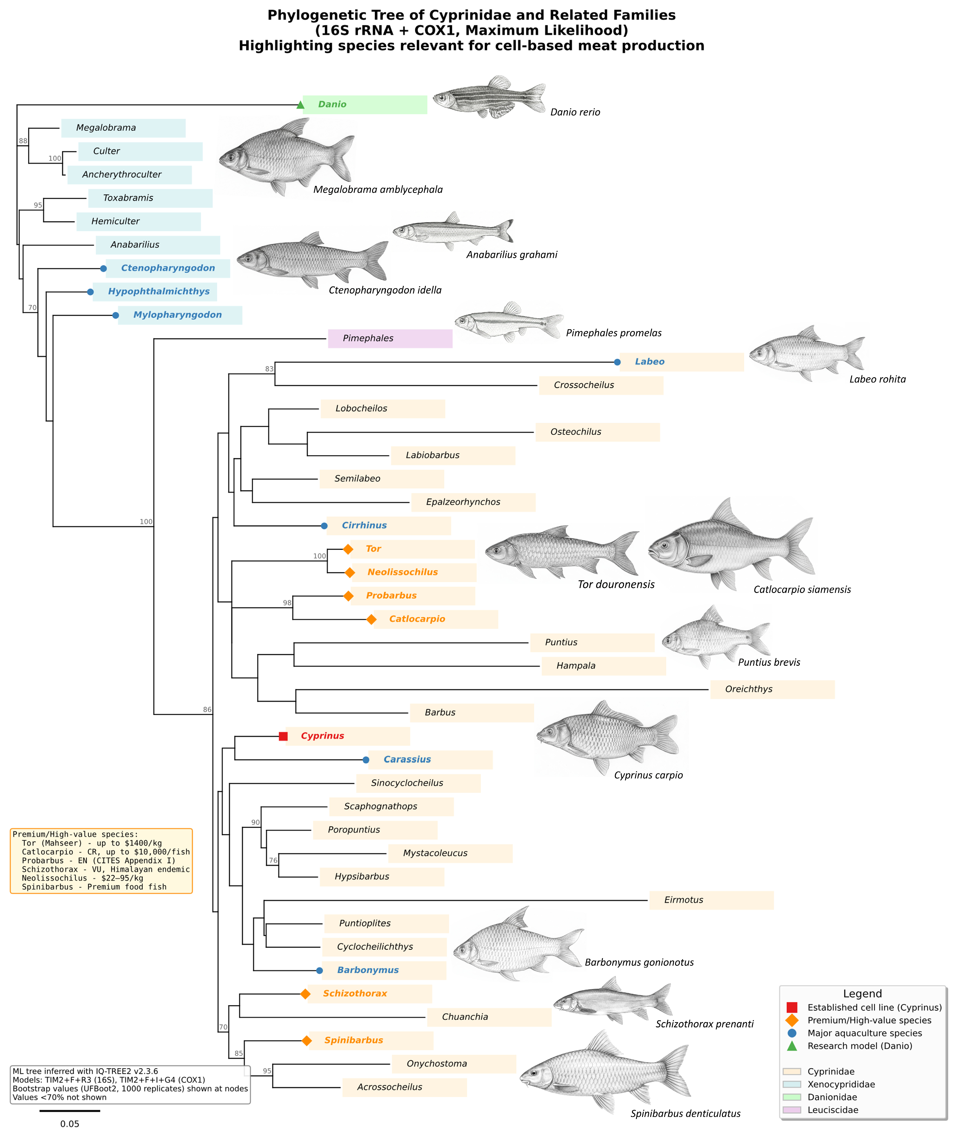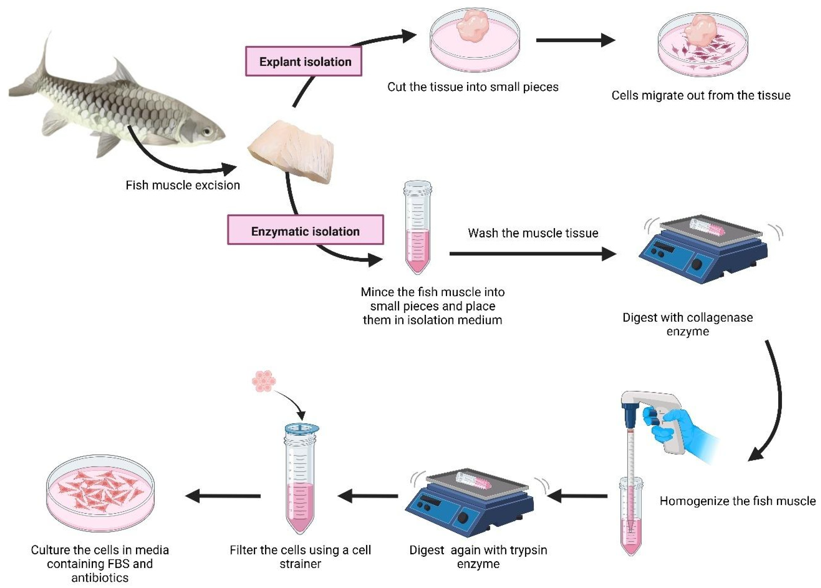 Setthawong, P.; Jantrachotechatchawan, C.; Netmanee, S.; Tandikul, N.; Ariyachet, C.; Phuthong, W.; Srikulnath, K. In Vitro Fish Cell Culture: From Primary Muscle Cells to Cell-Based Meat in Cyprinidae. Biology 2026, 15, 291. https://doi.org/10.3390/biology15030291