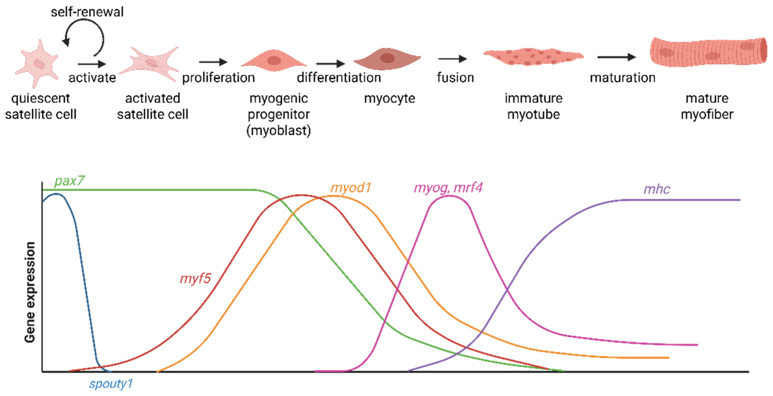 - Hernández-Hernández, J.M.; García-González, E.G.; Brun, C.E.; Rudnicki, M.A. The myogenic regulatory factors, determinants of muscle development, cell identity and regeneration. Semin. Cell Dev. Biol. 2017, 72, 10–18. [Google Scholar] [CrossRef]