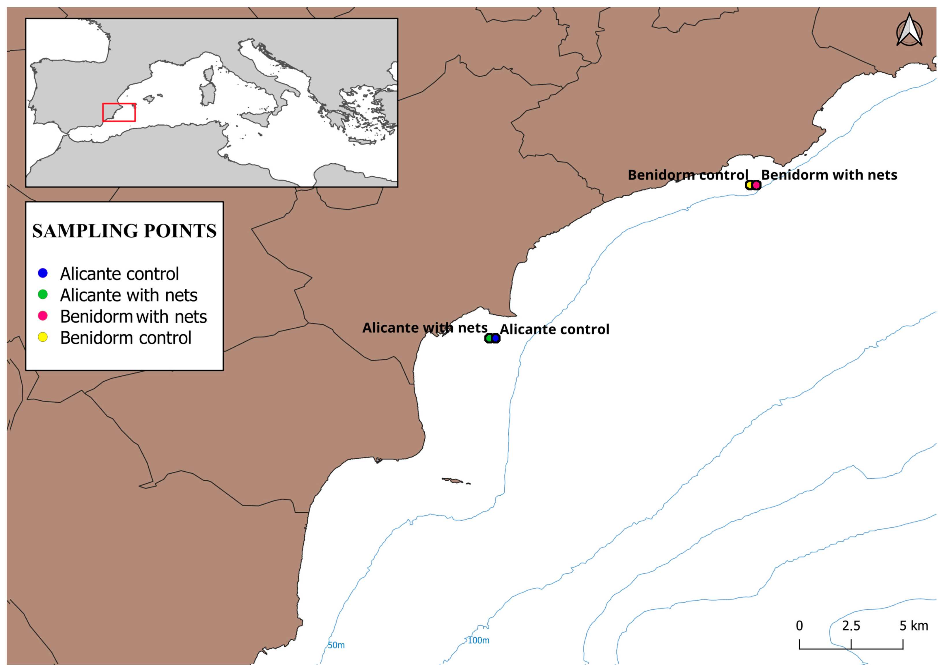 | Alicante control | sediment | 38°20′44″ N 0°26′44″ W | 14 August 2023 | 23–26.5 m |