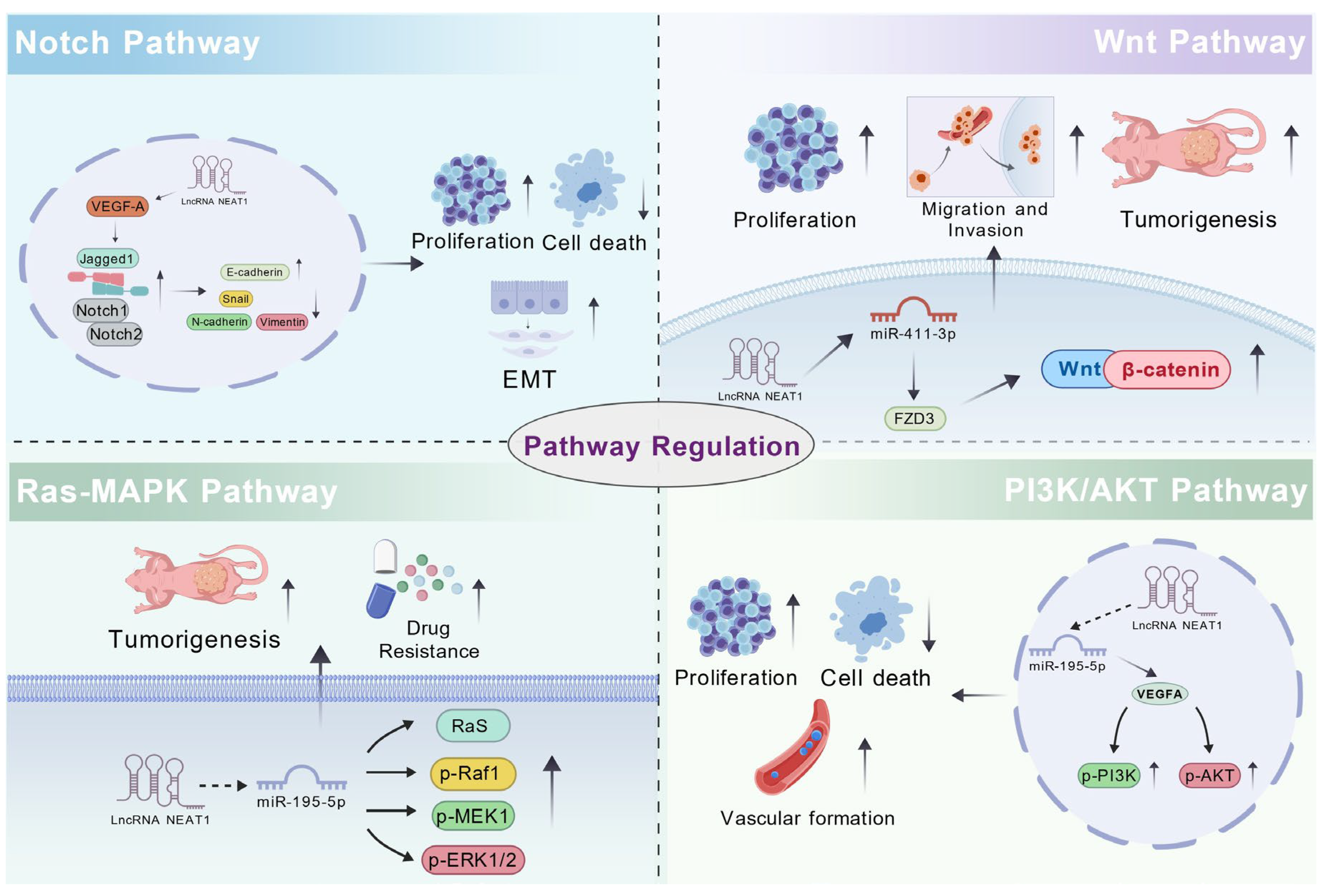 - Liang, J.; Fang, F.; Gao, X.; Shi, J.; Zhao, J.; Zhao, Y. LncRNA NEAT1 promotes proliferation, migration, and invasion of laryngeal squamous cell carcinoma cells through miR-411-3p/FZD3-mediated Wnt signaling pathway. BMC Cancer 2024, 24, 904. [Google Scholar] [CrossRef] [PubMed]