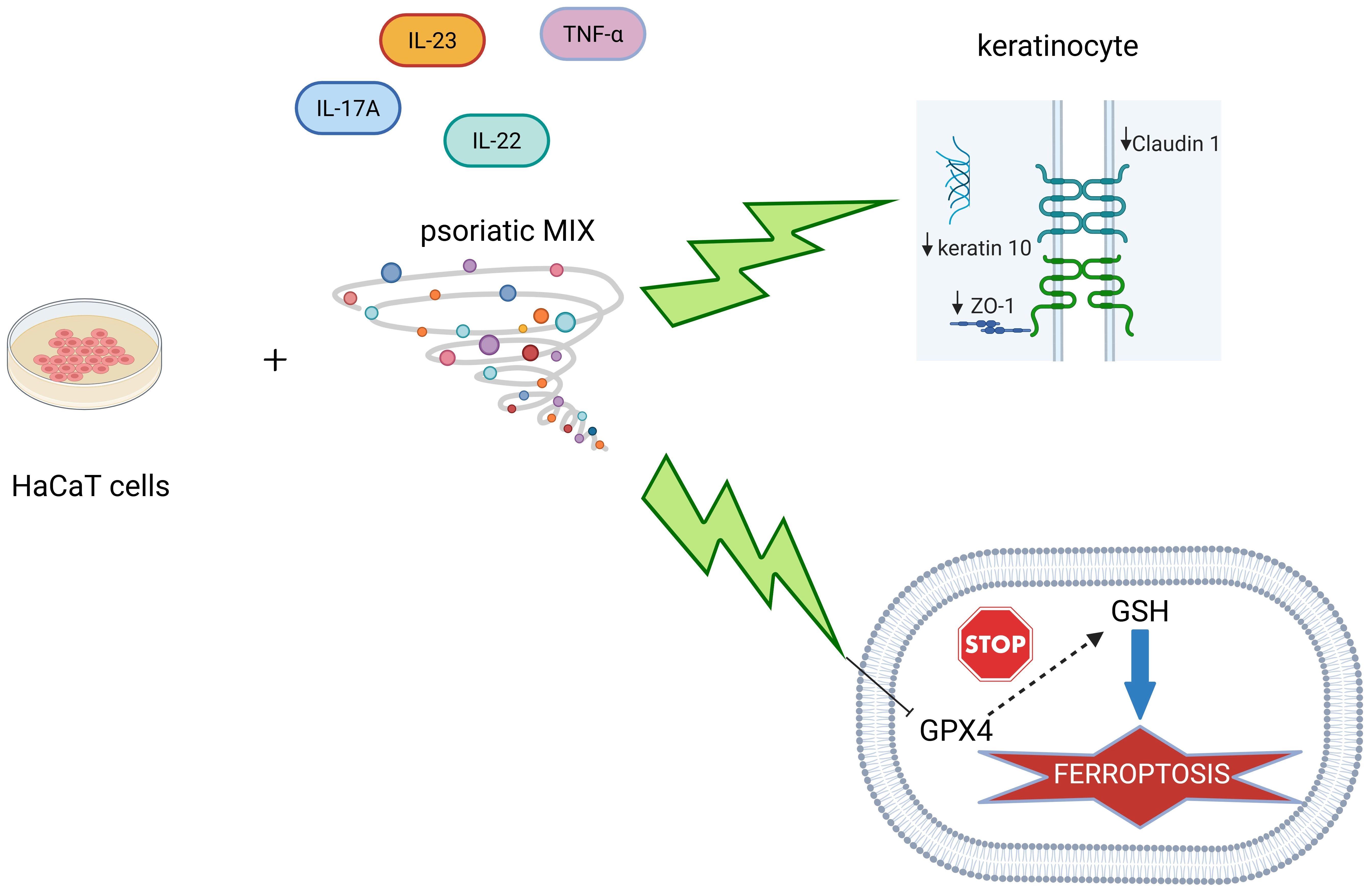 - Wu, N.; Hu, Q.; Fu, Z.; Tong, X.; Gao, L.; Tan, L.; Yan, S.; Wang, D.; Zeng, J.; Lu, J.; et al. Pilot study of the role of ferroptosis in abnormal biological behaviour of keratinocytes in psoriasis vulgaris. Arch. Dermatol. Res. 2024, 316, 604. [Google Scholar] [CrossRef]