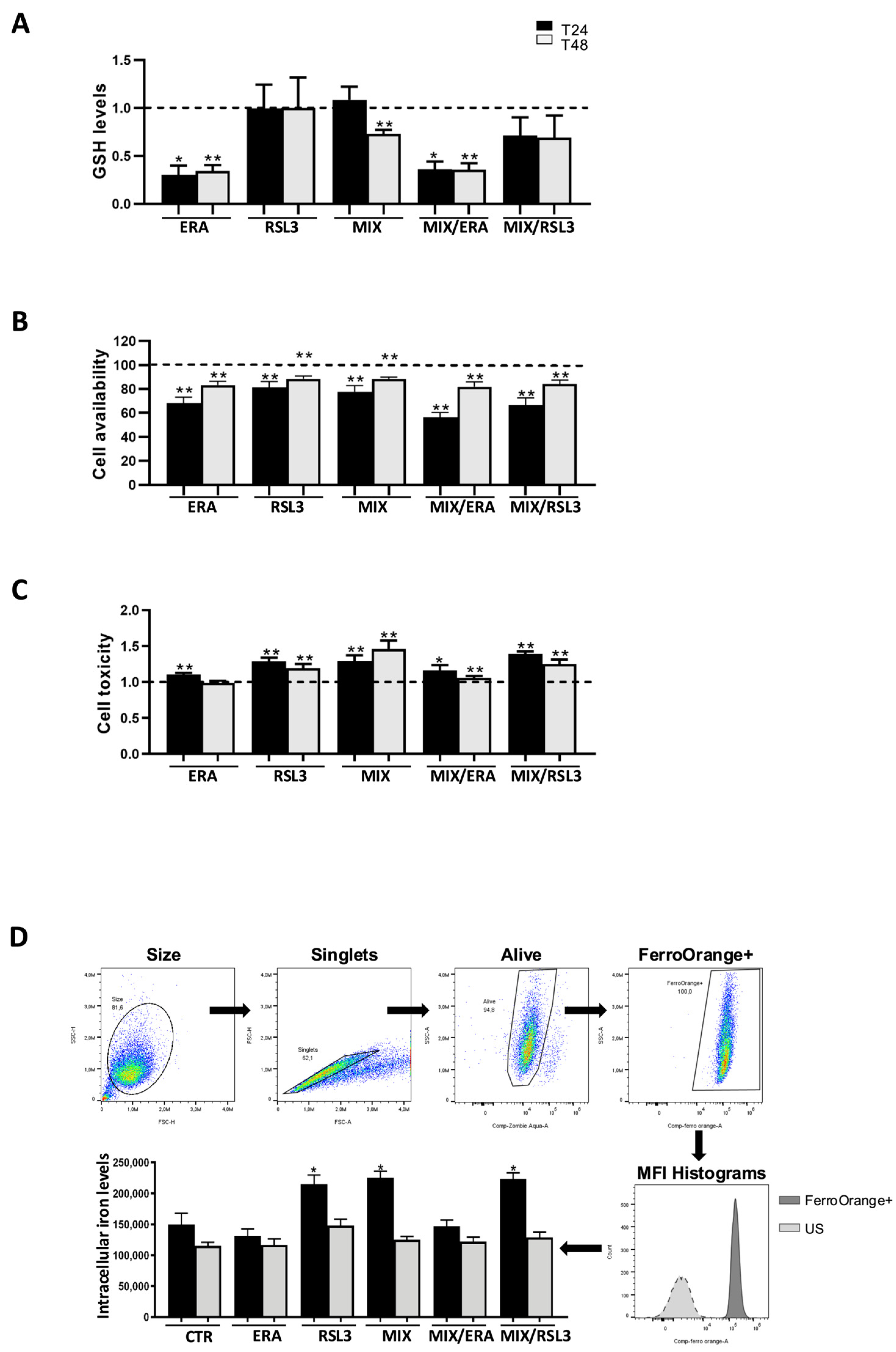 2.8. Detection of the Intracellular Fe2+ Levels