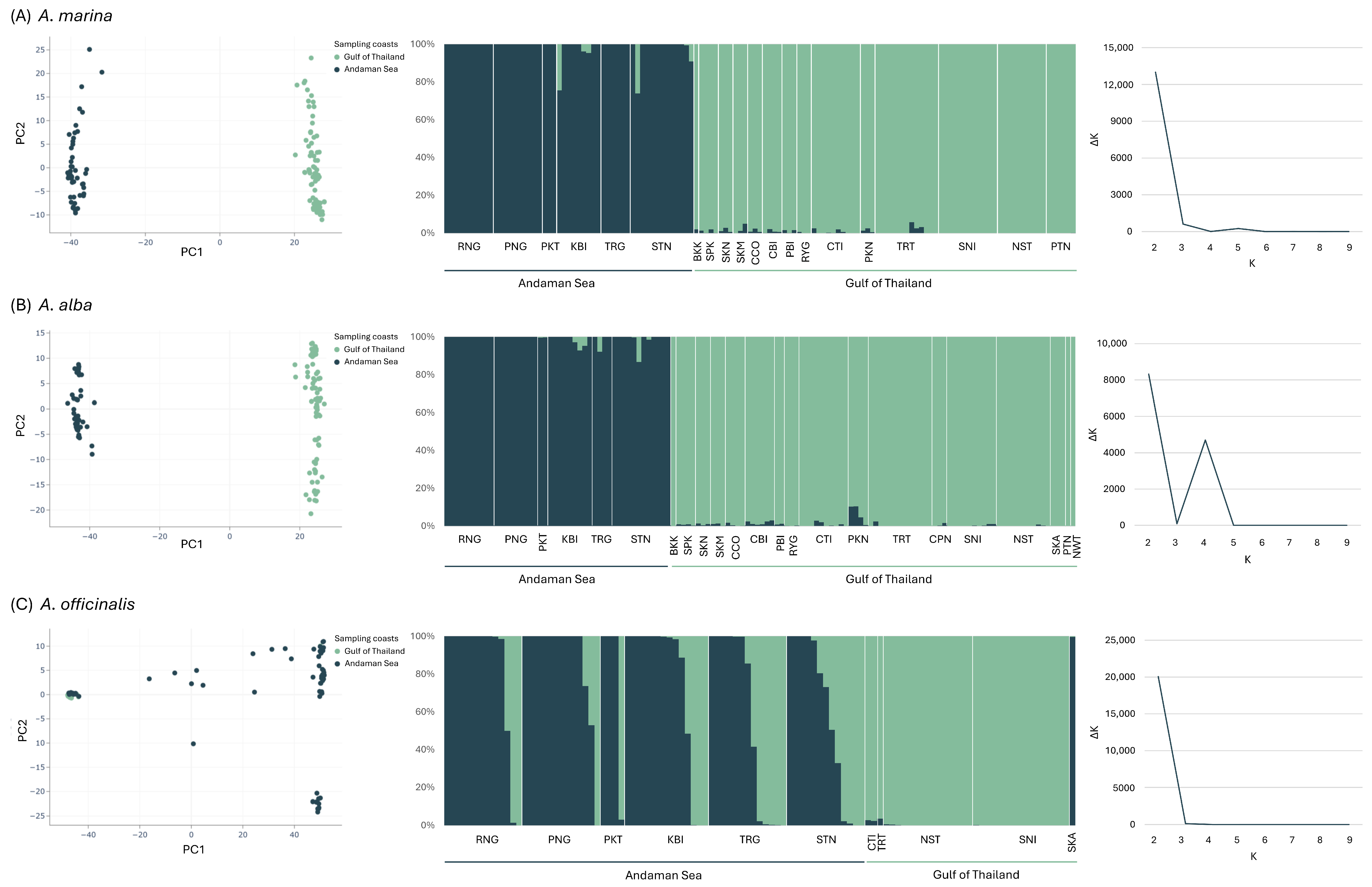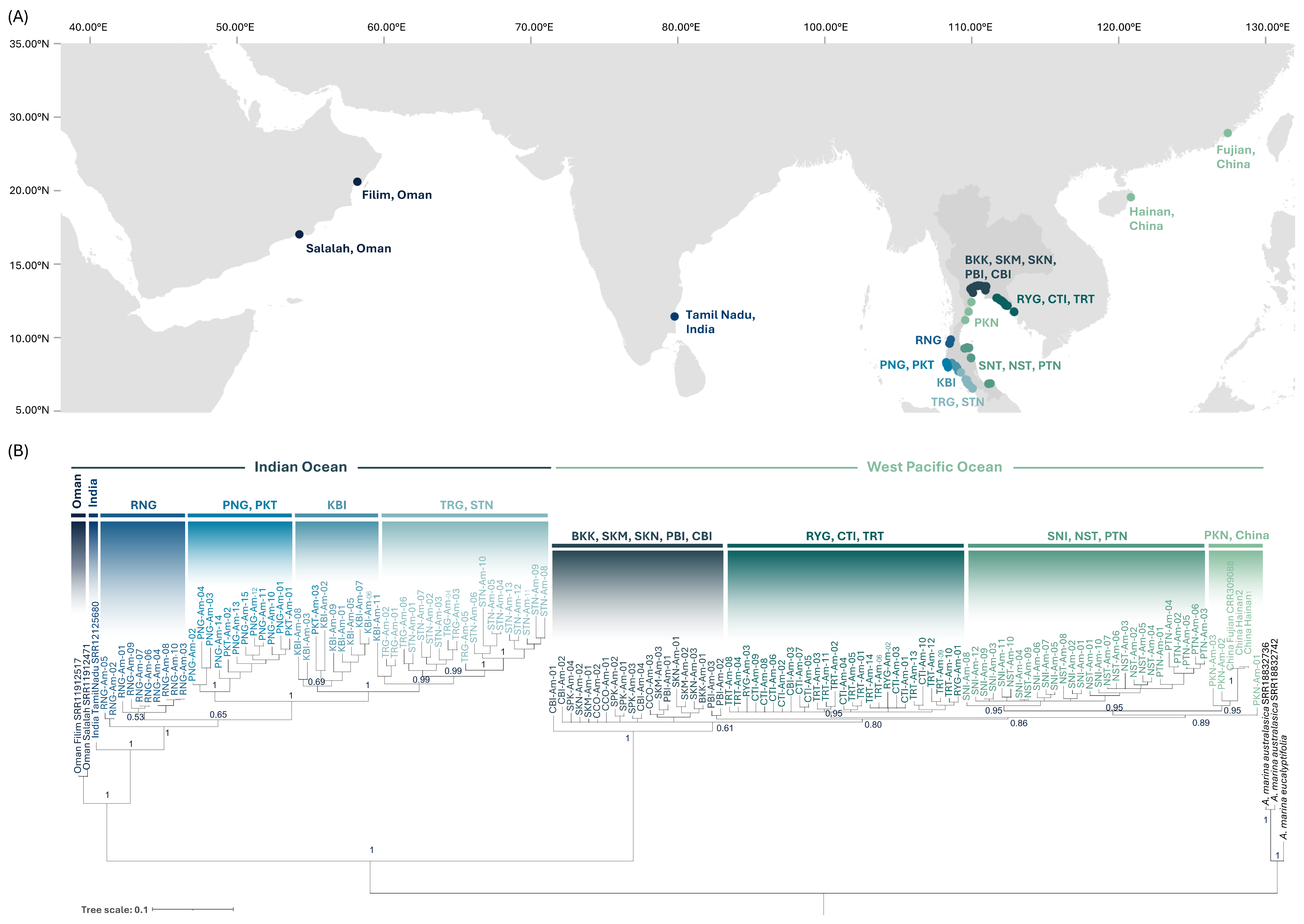 3.4. Phylogeography of A. marina