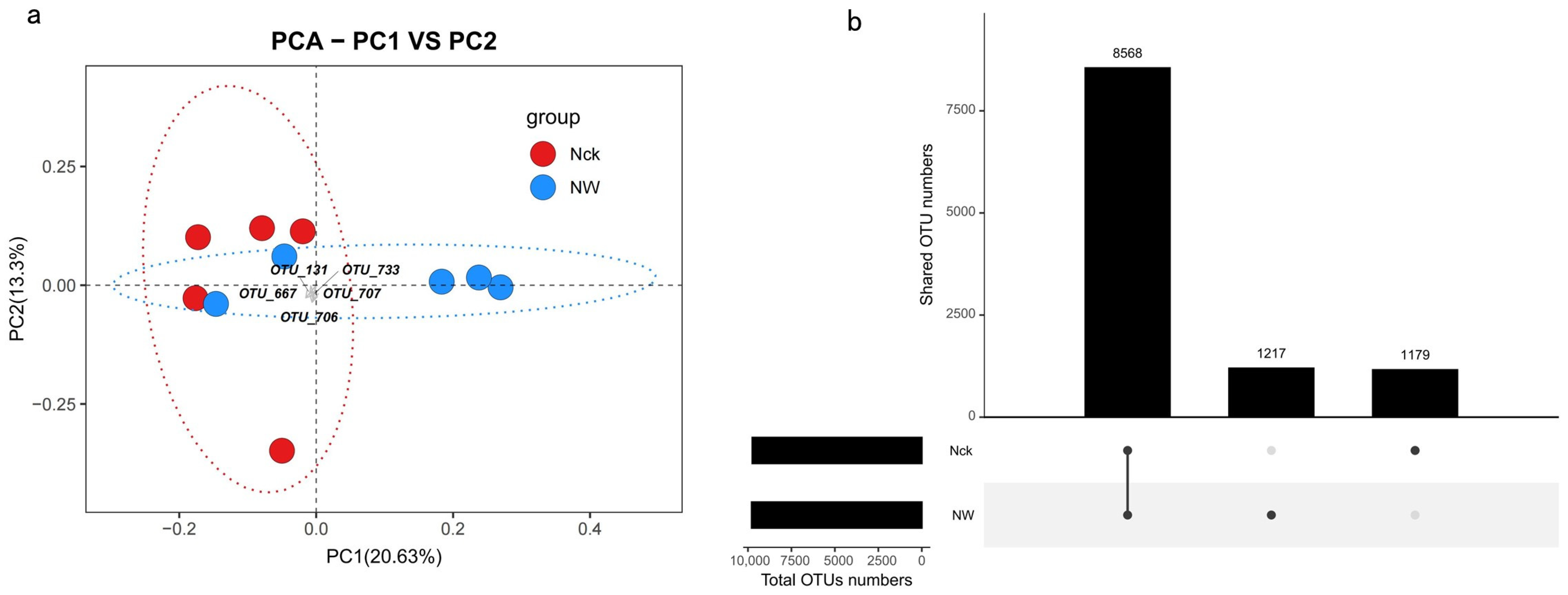 - Liu, H.Q.; Li, F.Y.; Liu, J.Y.; Shi, C.J.; Tang, K.Y.; Yang, Q.H.; Liu, Y.; Fu, Q.; Gao, X.T.; Wang, N.; et al. The reciprocal changes in dominant species with complete metabolic functions explain the decoupling phenomenon of microbial taxonomic and functional composition in a grassland. Front. Microbiol. 2023, 14, 1113157. [Google Scholar] [CrossRef]