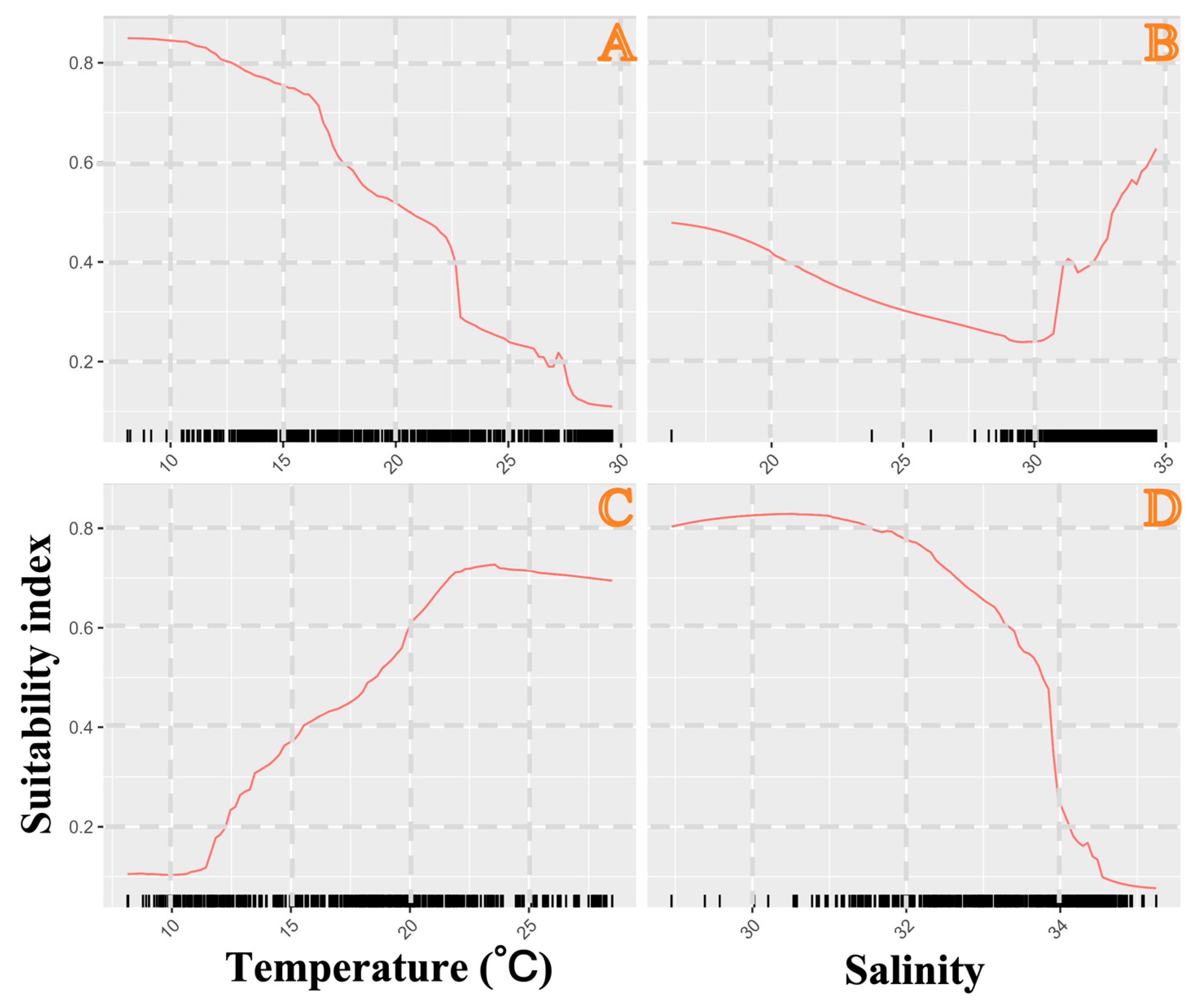 - Xu, M.; Liu, Y.; Xu, Y.; Zheng, H.; Ling, J.; Li, H. Seasonal spatial distribution and migration patterns of the shrimp Parapenaeus fissuroides in the southern Yellow and East China Seas: Habitat area change under climate scenarios. Animals 2025, 15, 3597. [Google Scholar] [CrossRef]